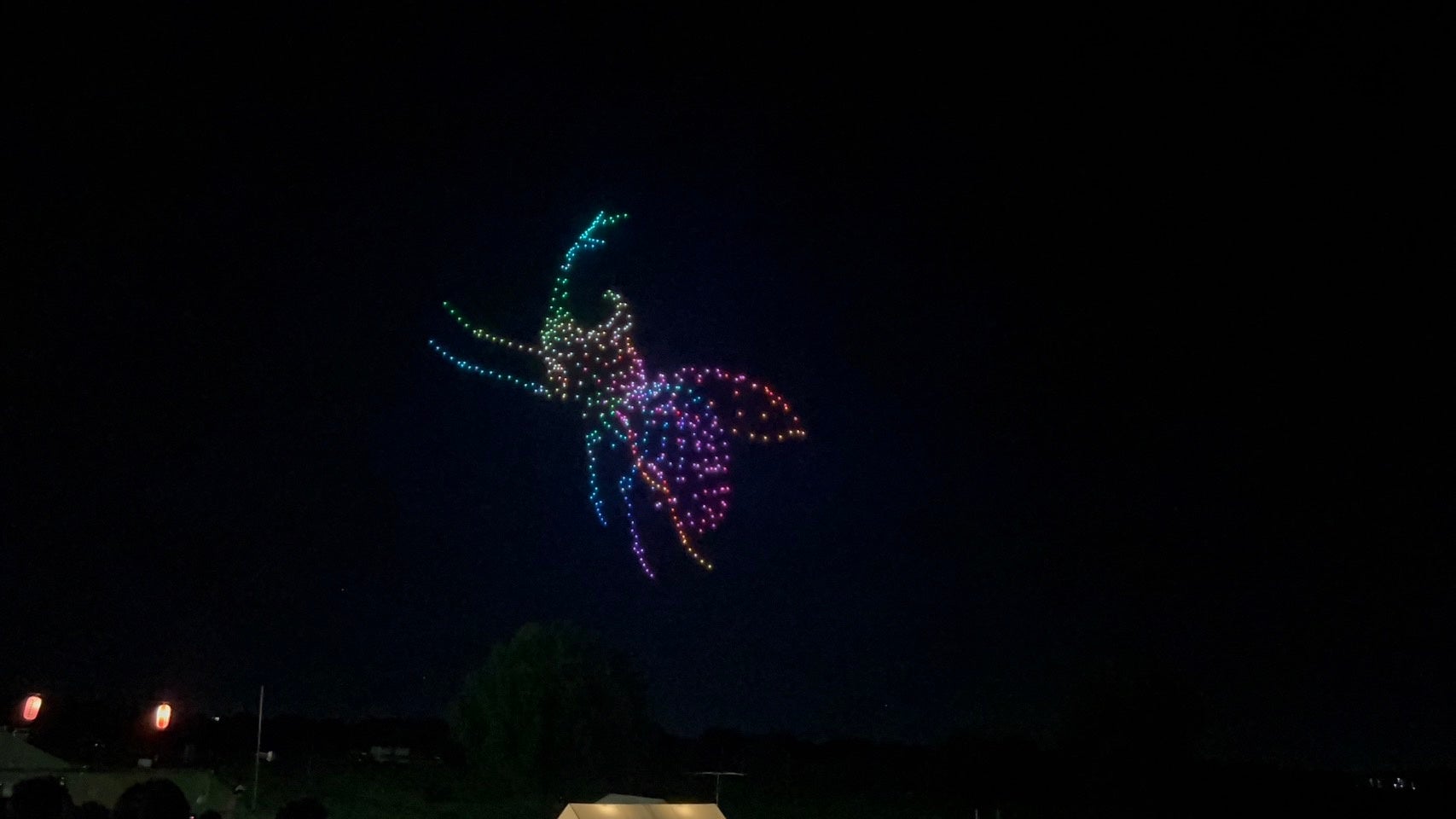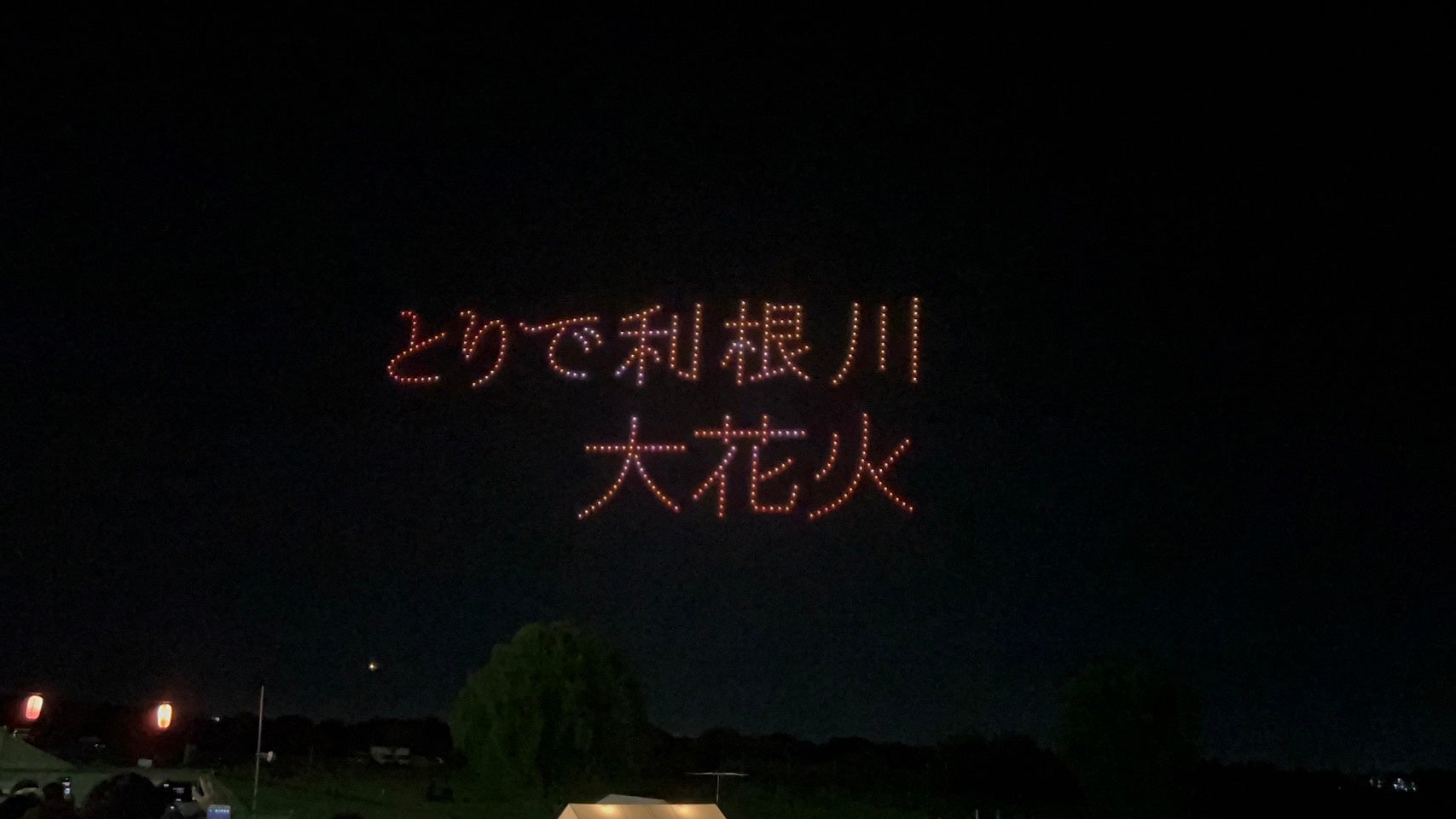 夏の風物詩にちなんだ500機のドローンショーで、アニメーションが夜空に描かれた瞬間に、大勢の観客が大歓声を上げ、会場は大いに盛り上がりました。関東近郊での実施ということもあり、多くの観客が来場しました。今年の「とりで利根川大花火」はドローンショーを導入し、大成功のうちに終了しました。