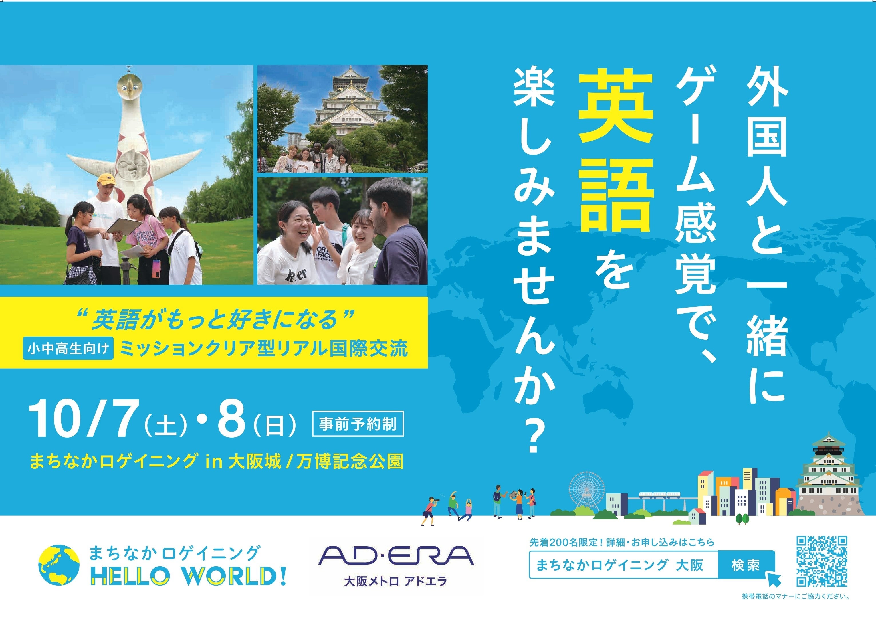 この新感覚の英語実践プログラム「まちなかロゲイニング in 大阪城公園/万博記念公園」の第一弾を、今秋10月に初開催します。関西に住む子どもたちが関西に住む外国人とチームを組んでミッションクリアを目指す大型イベント。初開催を記念し、初回限定の特別価格で提供しますので、ぜひお友だちとお誘い合わせの上、お申し込みください。