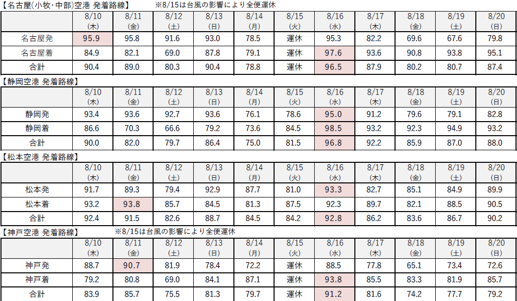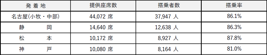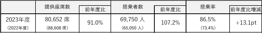 台風7号の影響により欠航便が多く発生したものの、搭乗率としては昨年度を上回る実績となりました。