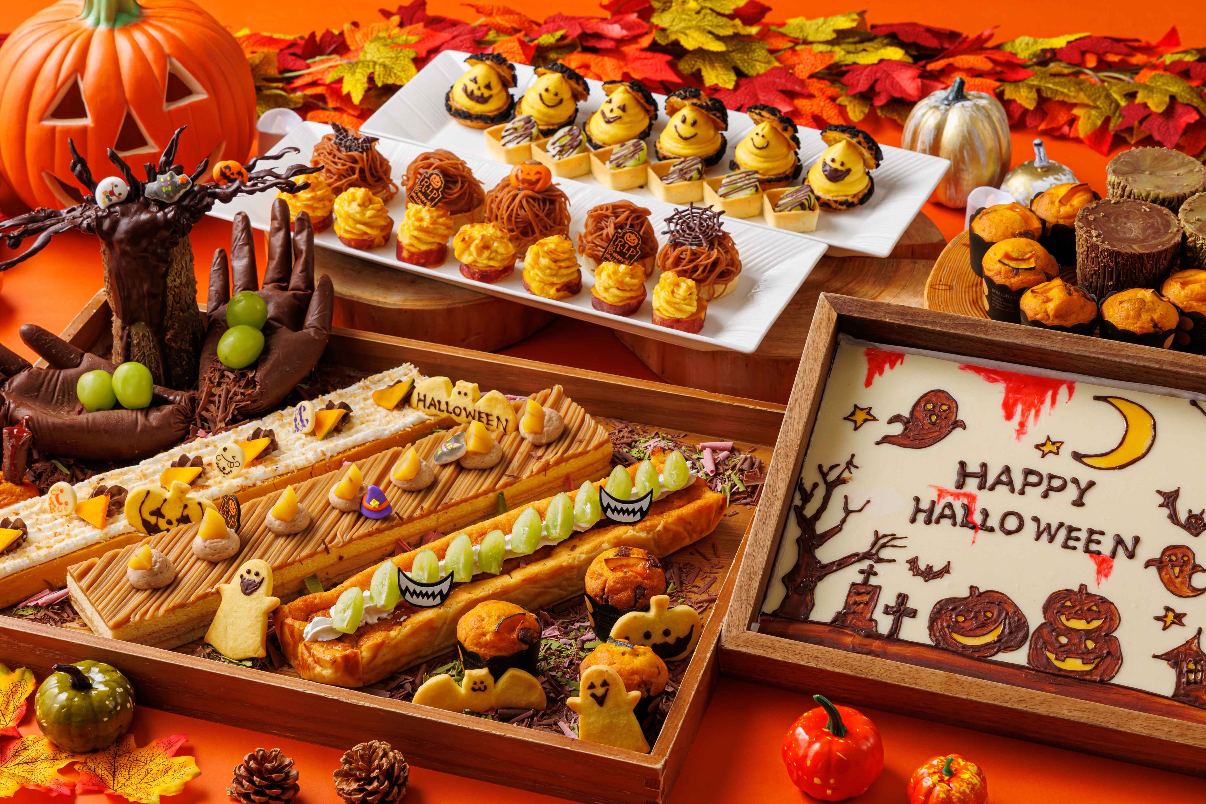 いもくりなんきん 秋の収穫祭をテーマに、さまざまなメニューをラインアップ。「栗とさつま芋のオレンジマーマレード風味」や「秋刀魚とレッドキドニービーンズと茸のマリネ」など、秋の食材をふんだんに使った料理が並ぶほか、オープンキッチンでお客様の目の前で切り分けて提供する「ローストビーフ」は、河内ワインで風味をつけた和風ソースでご提供。また、「目玉お化けのコロッケ」や「竹炭ブラックビーフカレーとナン」、「ジャック・オー・ランタンのお寿司」など様々な料理にハロウィーン気分を盛り上げるアイテムが登場いたします。