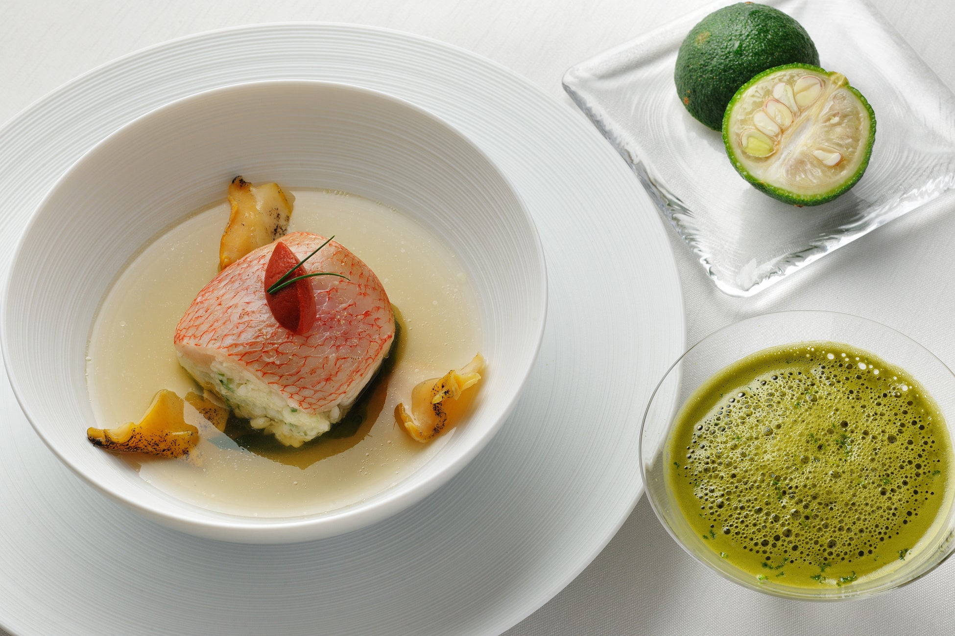 魚料理「キンキのヴァポーレ」×抹茶と柑橘のモクテル