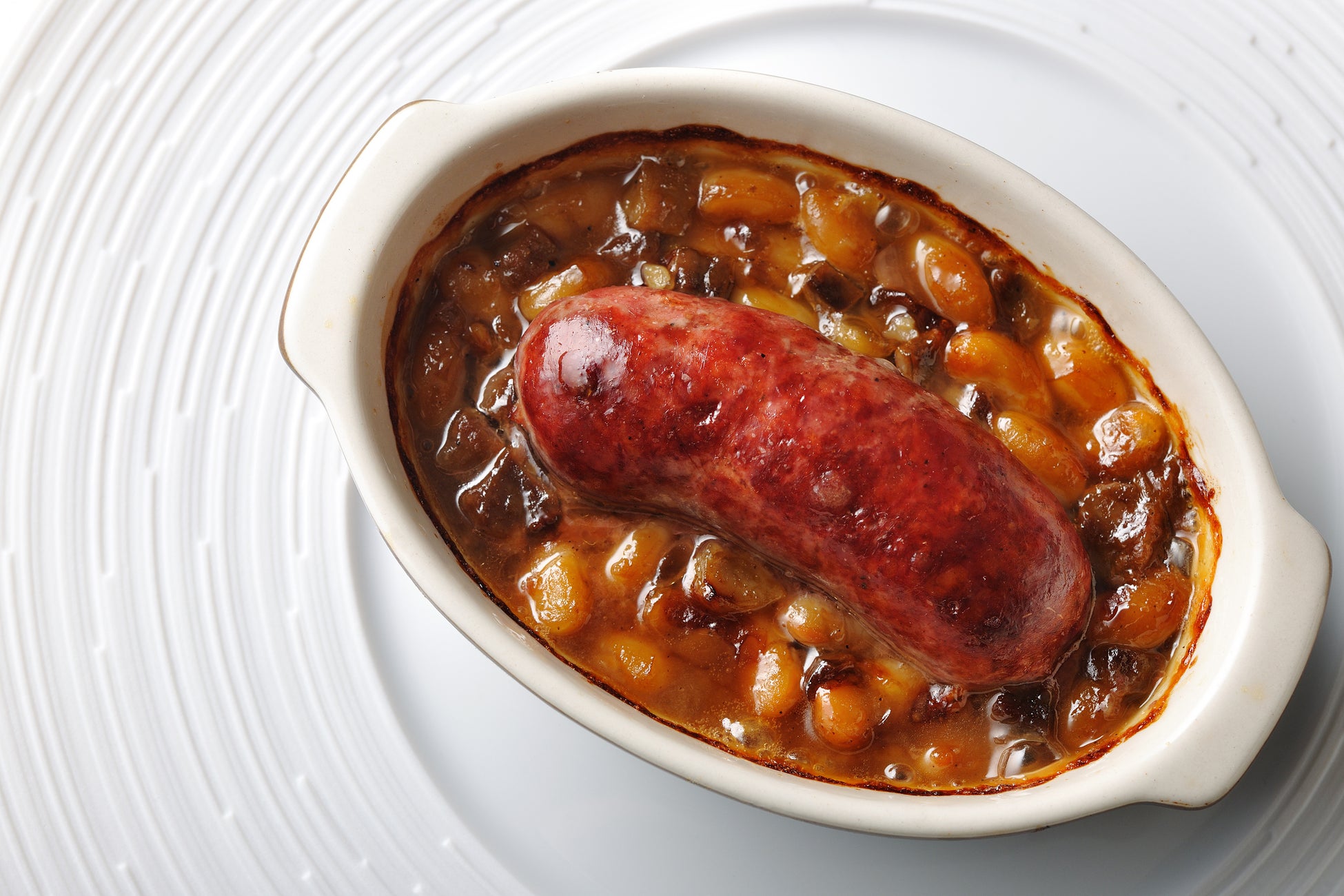 秋は鹿が冬に向けて栄養を蓄えるため、鹿肉が一番美味しい時期です。北海道ならではのエゾ鹿肉を使用したサルシッチャ(*1)を、希少な鹿のタンとスネ肉を使用したソースとともにオーブンで焼き上げます。この時期にこの土地でしか味わえない、脂がのったエゾ鹿肉をふんだんに使った一品を存分に味わうことができます。