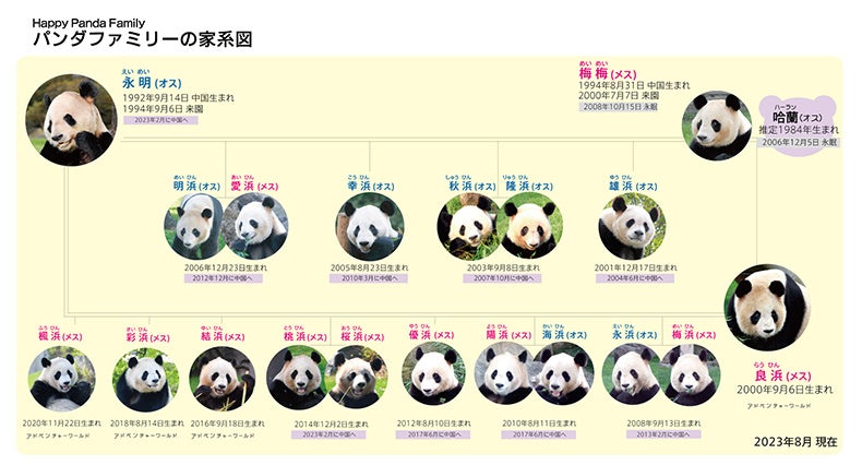 アドベンチャーワールド(和歌山県白浜町)では、8月から11月にかけてパンダファミリー4頭が誕生日を迎えます。9月からは「HAPPY PANDA FES 2023」と題し、誕生会や収穫祭など、パークやオンラインで参加・体験型イベントを連続開催いたします。「HAPPY PANDA FES 2023」のスタートは、お母さんパンダ「良浜(らうひん)」の誕生会イベント!9月6日(水)誕生日当日は休園日ですが、9月2日(土)~9月6日(水)までをバースデー期間として、さまざまなイベントを開催いたします。
