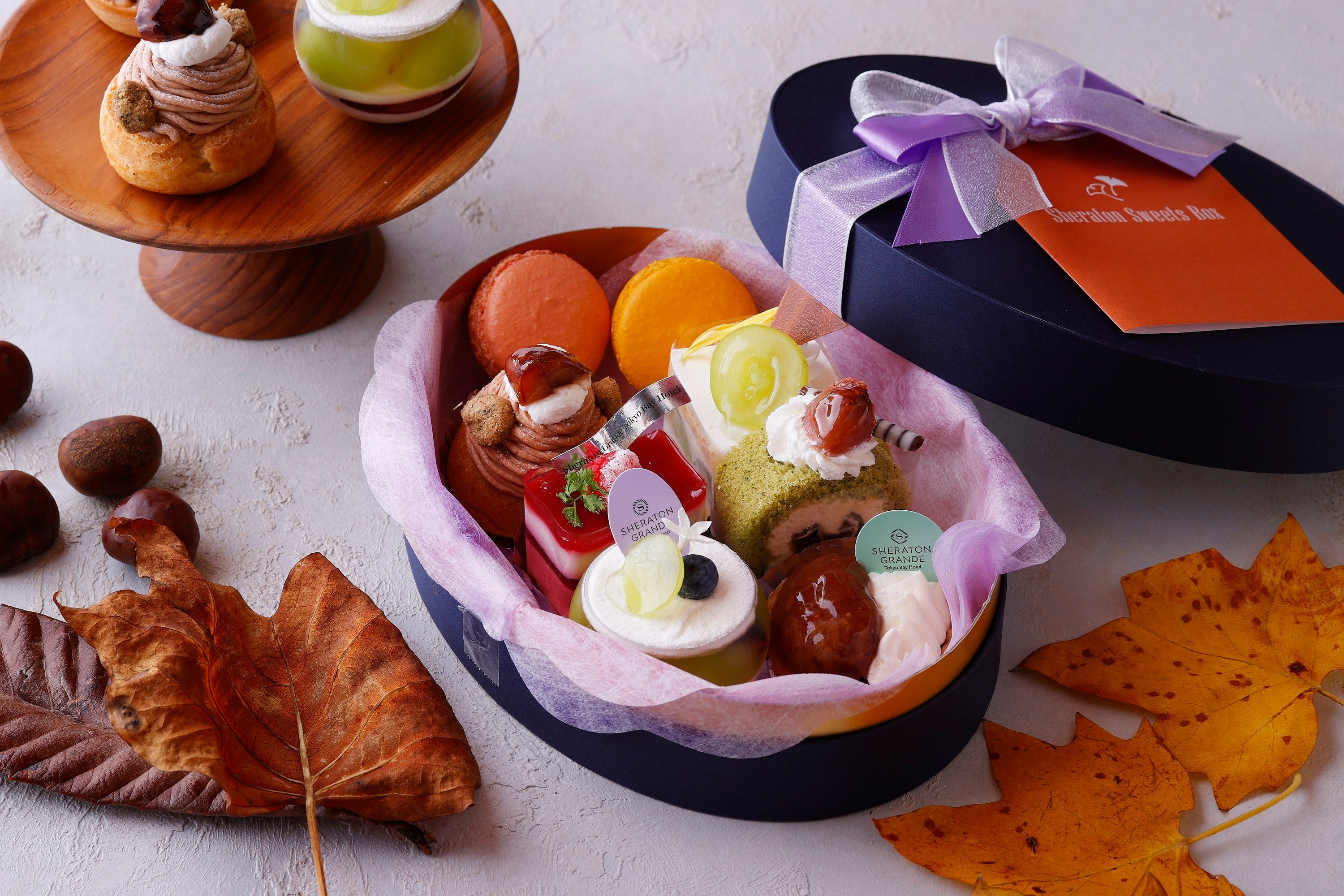 毎月好評の8種類のミニスイーツを宝石箱のように閉じ込めた「#シェラトンスイーツボックス」。今回は、秋の味覚満載のオータムスイーツを集めました。シェフ選りすぐりのミニスイーツの数々をぜひお楽しみください。