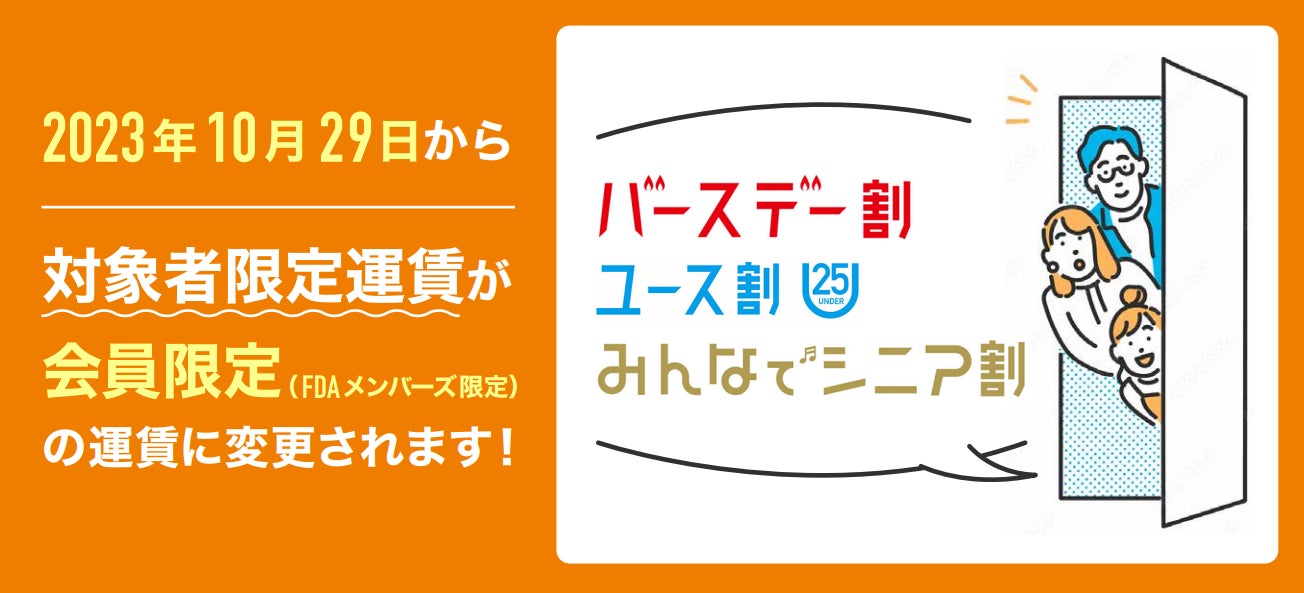 [URL] https://www.fujidream.co.jp/fare/type/members/FDAでは、引き続きお客さまにご利用いただきやすい運賃設定に努めてまいりますので、何卒ご了承をお願いいたします。
