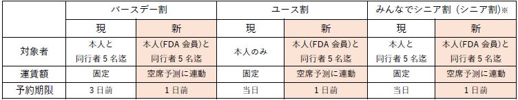 対象者限定運賃として販売している『バースデー割』、『ユース割』および『みんなでシニア割』について、2023年10月29日(日)からの冬ダイヤ期間ご搭乗分よりリニューアルいたします。