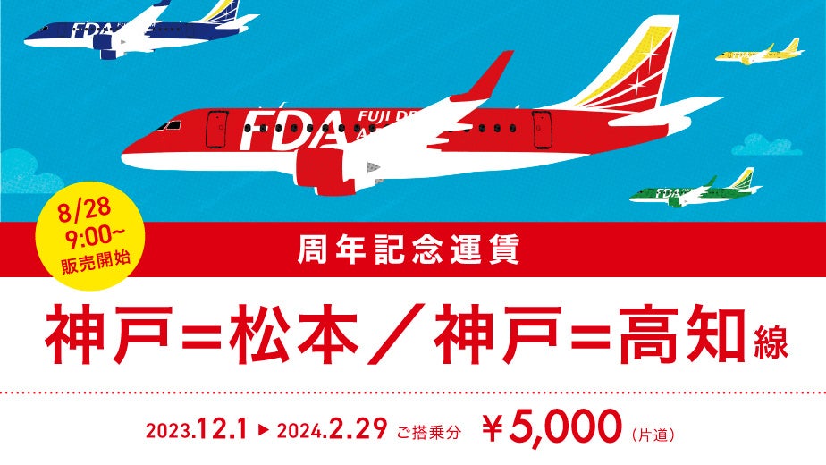 2019年10月より運航開始した『神戸=松本』線および『神戸=高知』線の就航4周年を記念して、搭乗日・席数限定の「周年記念運賃」を設定いたします。