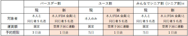 4.『バースデー割』・『ユース割』・『みんなでシニア割』運賃ルールの変更について
