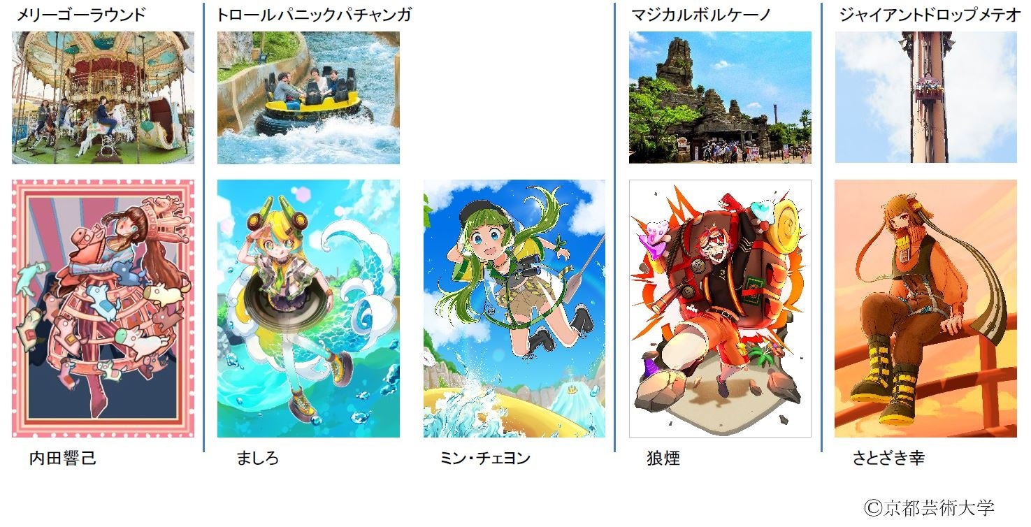 本講座では、学生に「アトラクションの擬人化」という新しい制作の切り口を提供するとともに、京都芸術大学の学生ならではのアイデアと創作力を、ひらかたパークの宣伝物に活用することを目的としています。