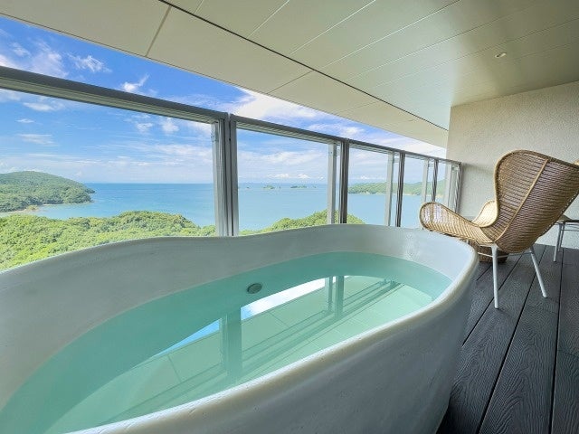 穏やかな海と島々が織りなす美しい風景が目に飛び込む、伊勢の自然に宿る空気を肌で感じ、湯に浸る。