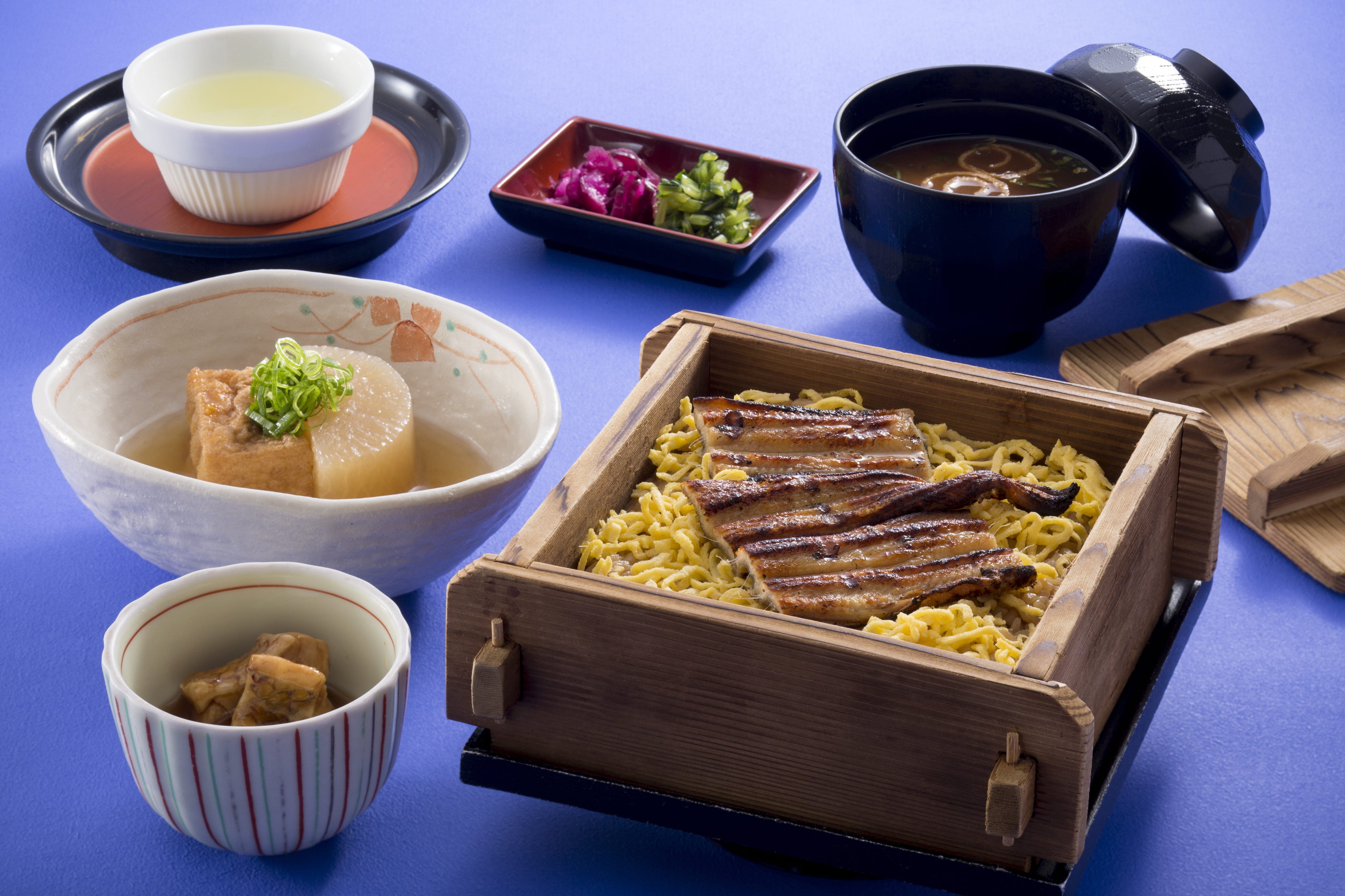 高砂名物「焼き穴子せいろ蒸し」をメインにした昼膳。だしで炊いたご飯の上に、錦糸玉子、身の肥えた香ばしい焼き穴子をのせ、ふっくらと蒸し上げました。甘辛い自家製ダレが穴子の旨みと香味を際立たせ、滋味豊かな味わいに。大根や厚あげなど「京和田」名物のおでんや季節の小鉢とともにお愉しみください。