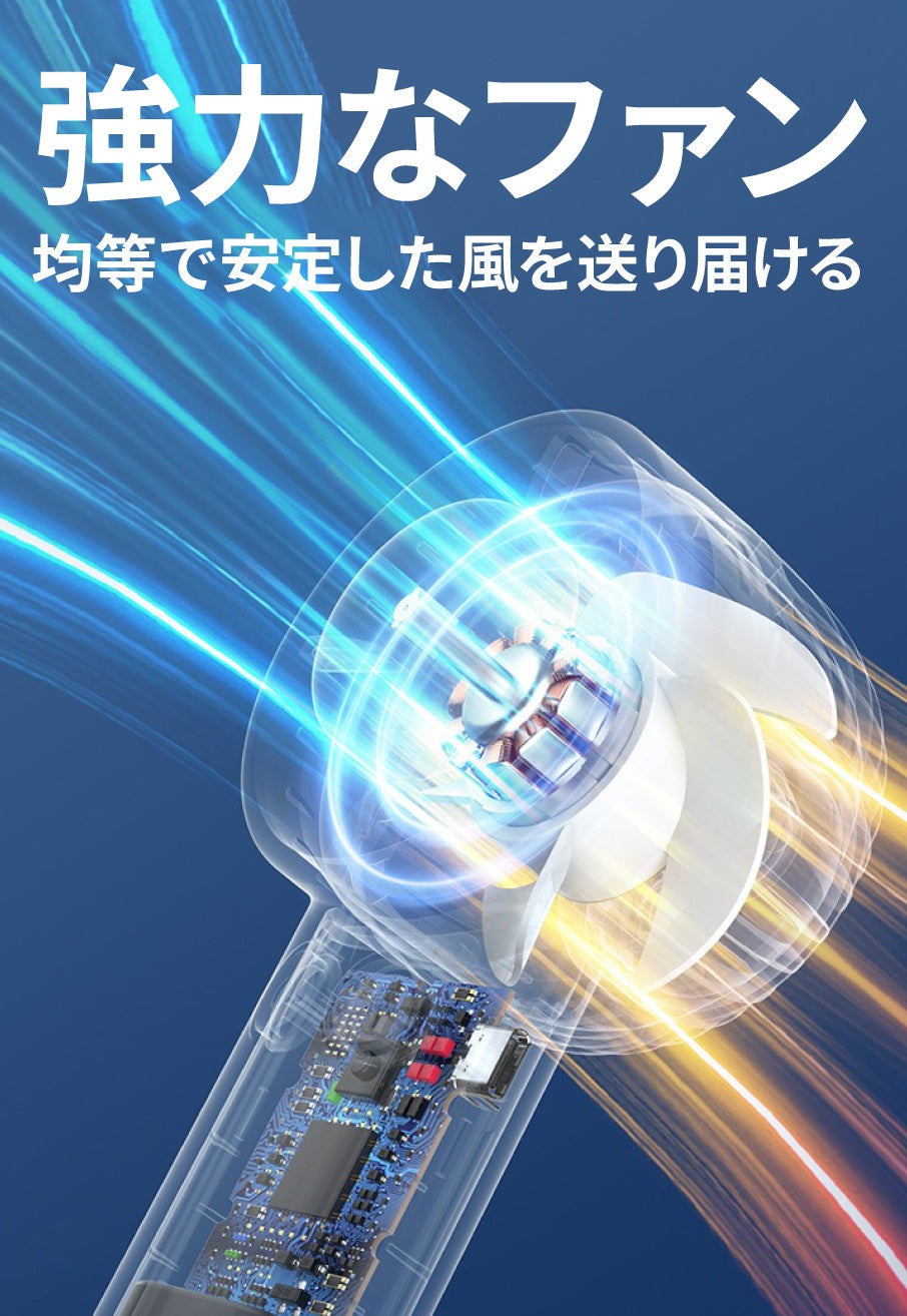 回転速度を安定させ、強い風を均等に引き起こすので常に快適。
