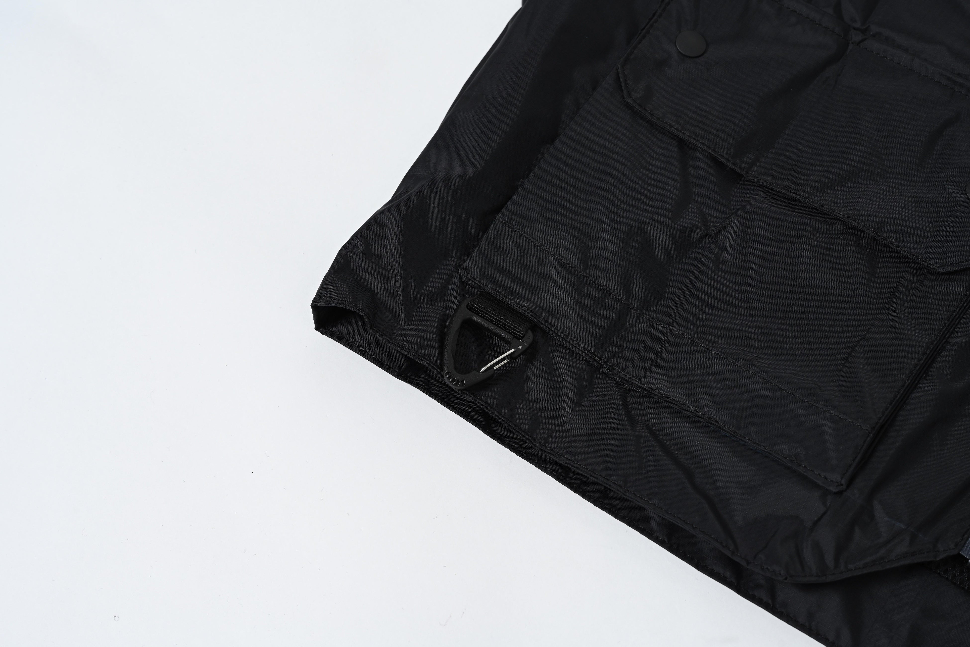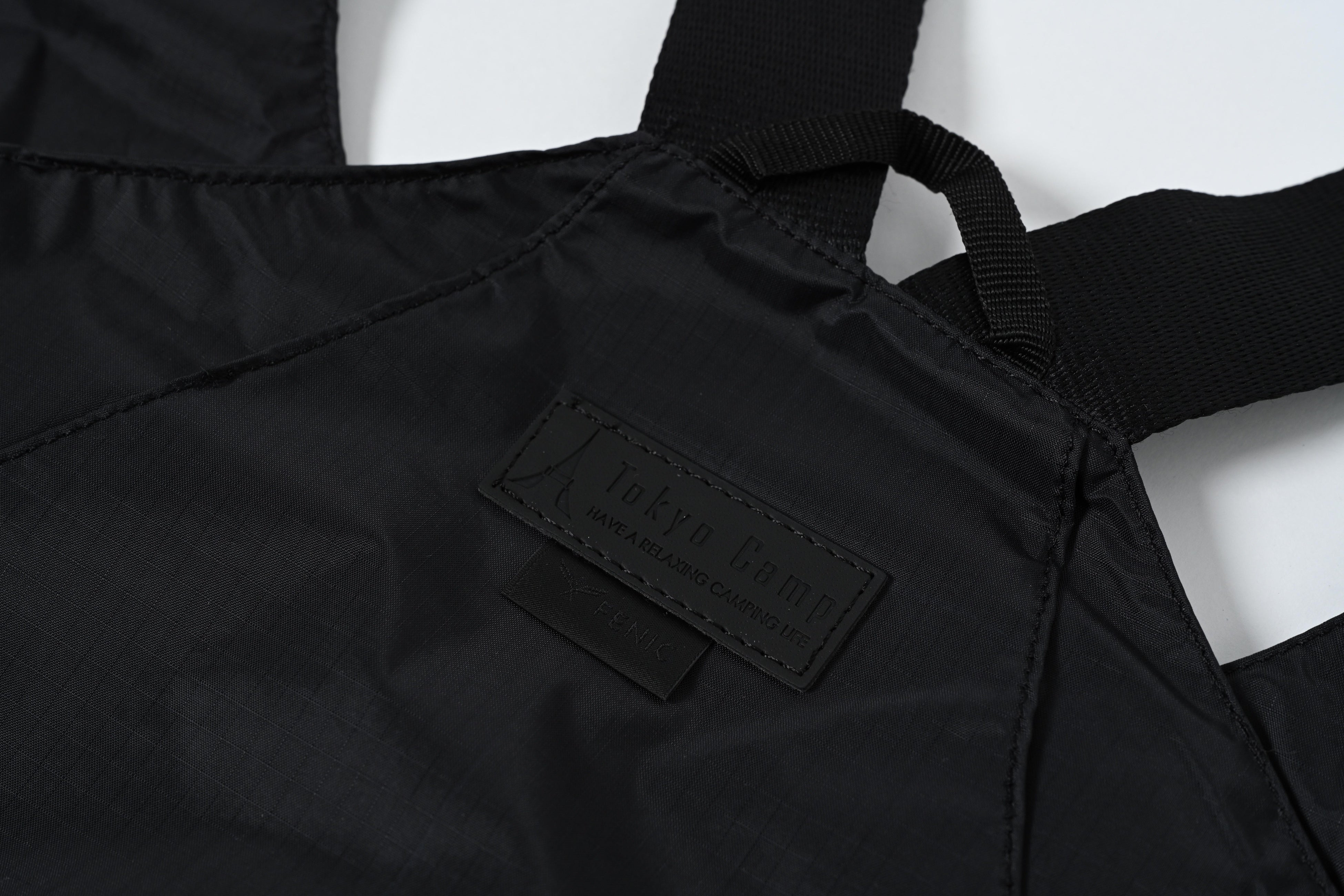 摩耗性・耐久性に優れた210Dナイロンリップストップ生地をメイン素材とし、『TokyoCamp』が独自開発した防炎生地”FENIC”を採用しています。それにより、防炎性・防水性・撥水性が向上しています。裏地には肌離れが良く蒸れにくいメッシュ生地を使用。通気性がよくオールシーズン着ていただけます。フロントにある2つのメインポケットには収納物の落下を防ぐスナップボタンが付いています。フロント左胸部にはギアループ、フロント右腹部にDカンが備えられています。アウトドアシーンはもちろん、普段使いとしても合わせやすい汎用性の高いアイテムです。