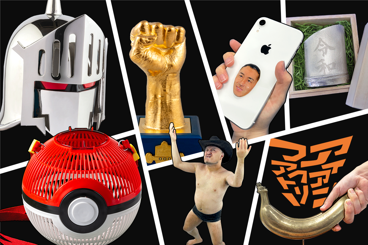 鋼製ロビンマスク、ポケモンの虫かご、令和最速グッズ(令和ぐい呑み)、バナナハンマー、リアルすぎる著名人のフィギュアや3Dフェイスステッカー、手型オブジェ等、商品を発売する度に世間を賑わせている株式会社キャステムが企画・製造を行っております。