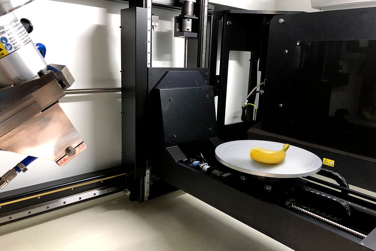 産業用CTスキャン「MCT225(株式会社ニコンインステック)」にて、本物のバナナを高解像度で3Dデータ化しています。