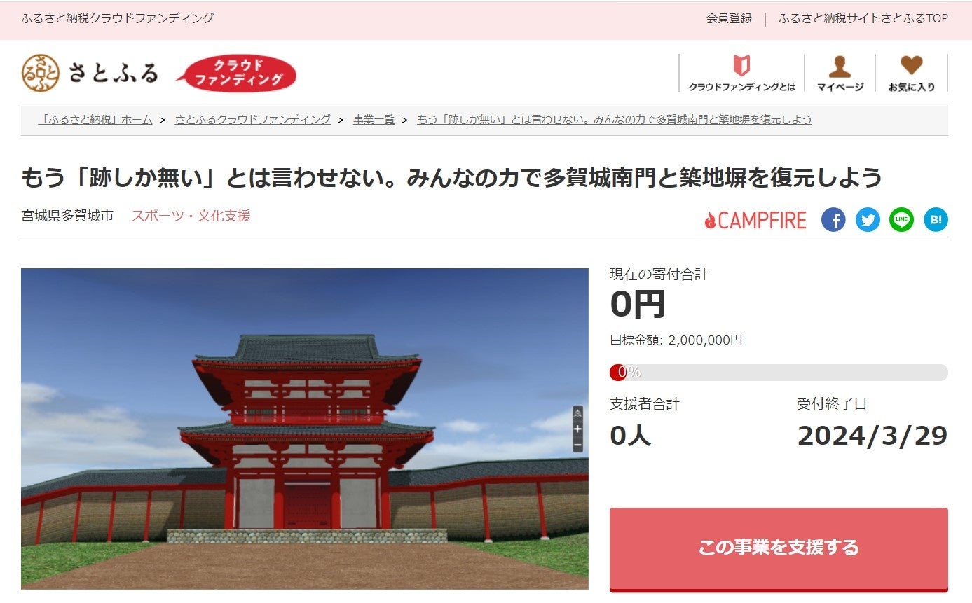 復元された南門・築地塀の見学を通して、多賀城の歴史の重要性や奥深さに触れていただくことで、多賀城市の認知向上や魅力度アップにもつなげていきます。多くの方に「行ってみたい」、一度お越しになられた方にも「また来てみたい」と思っていただけるよう、このプロジェクトを通して、どうぞ温かいご支援をよろしくお願いいたします。