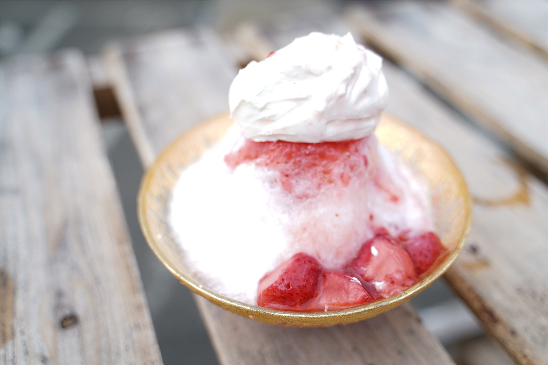 ふわふわと優しい食感を実現するため、極限まで薄く削られたの氷とぜいたくな蜜、まるでスイーツのような、かき氷です。