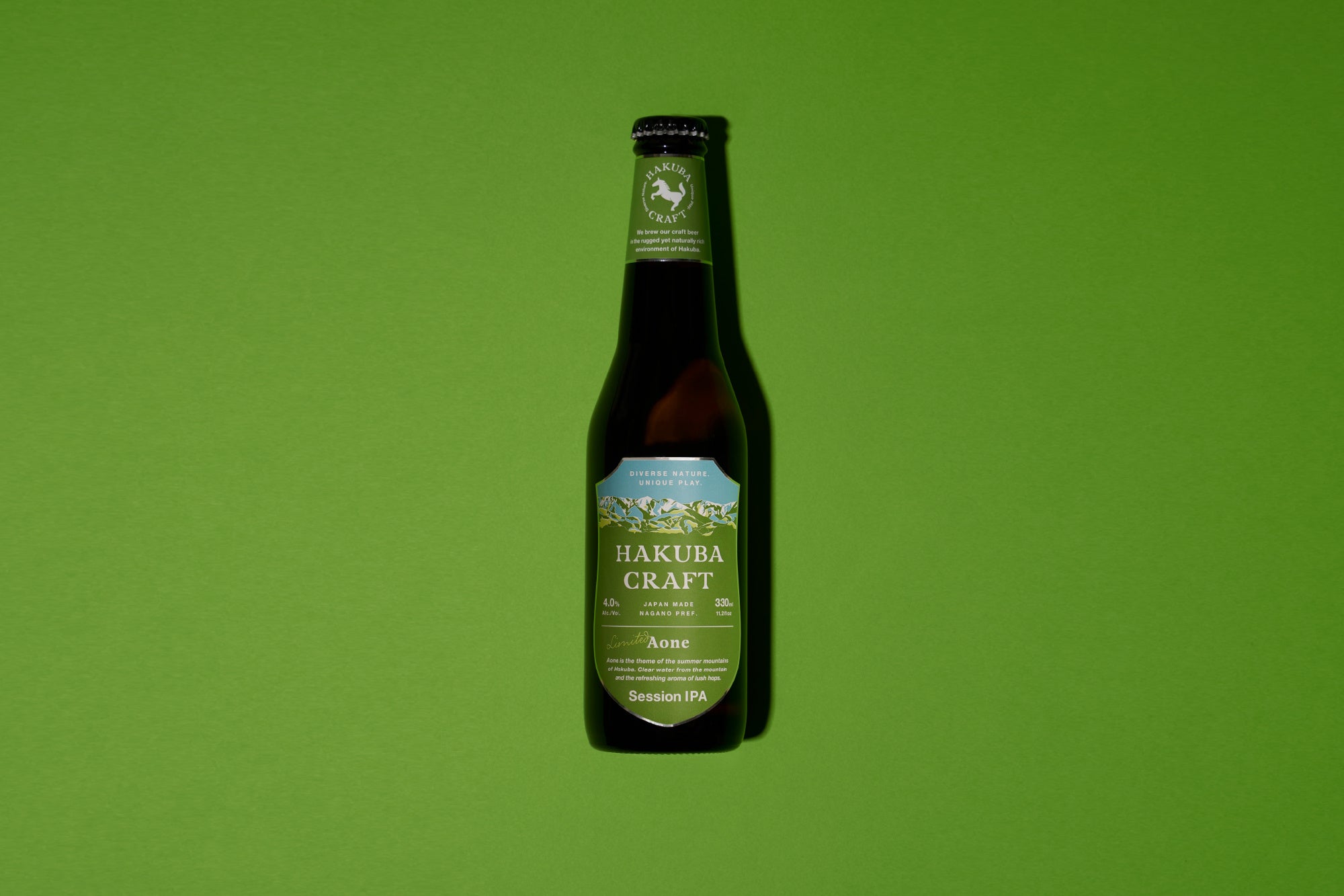 今回のAoneは青々と、木々の生い茂る夏山を意味する「青嶺(あおね)」より命名した、夏山の魅力を発信するためにつくられた1本です。昨今グリーンシーズンのアクティビティが充実してきたことで、白馬バレーは冬以外でも多くの観光客の方々が足を運ぶエリアになっております。訪れた観光客の方々の夏のお供として、夏の白馬バレーを満喫していただけるよう、爽やかな柑橘系の香りと超軽口な味わいに仕上げました。それにより、飲み疲れすることなく、最後の一滴まで爽快感を楽しむことができます。また、白馬バレーの山嶺で磨かれた美しい水と、青々しいホップの香りから、遠く離れていても、緑生い茂るどこか涼し気な夏山を感じてもらえるよう願いを込めてつくりました。