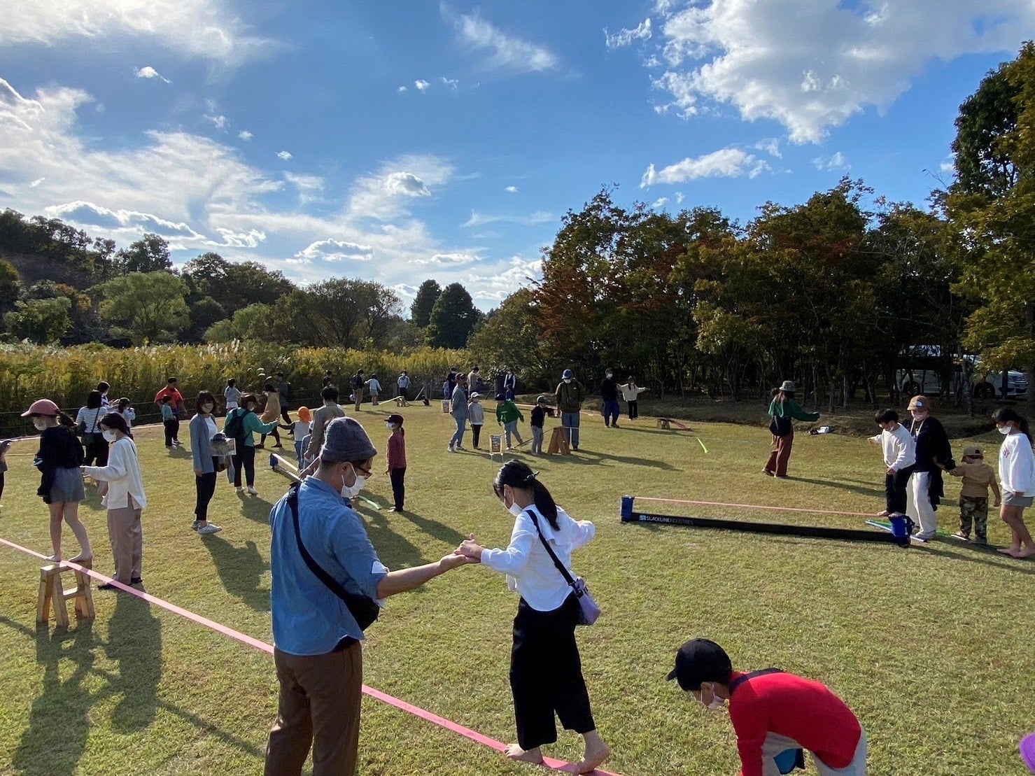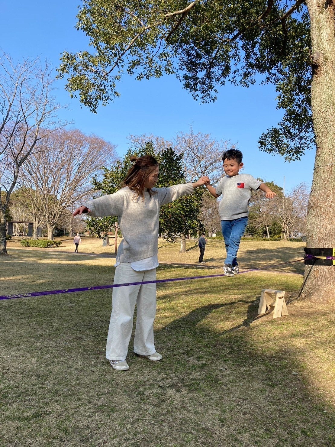 細い帯状のラインの上を歩いたり、跳ねたりして楽しむバランス感覚が重要なスポーツです。子供から大人まで幅広い方々にお楽しみいただけます。