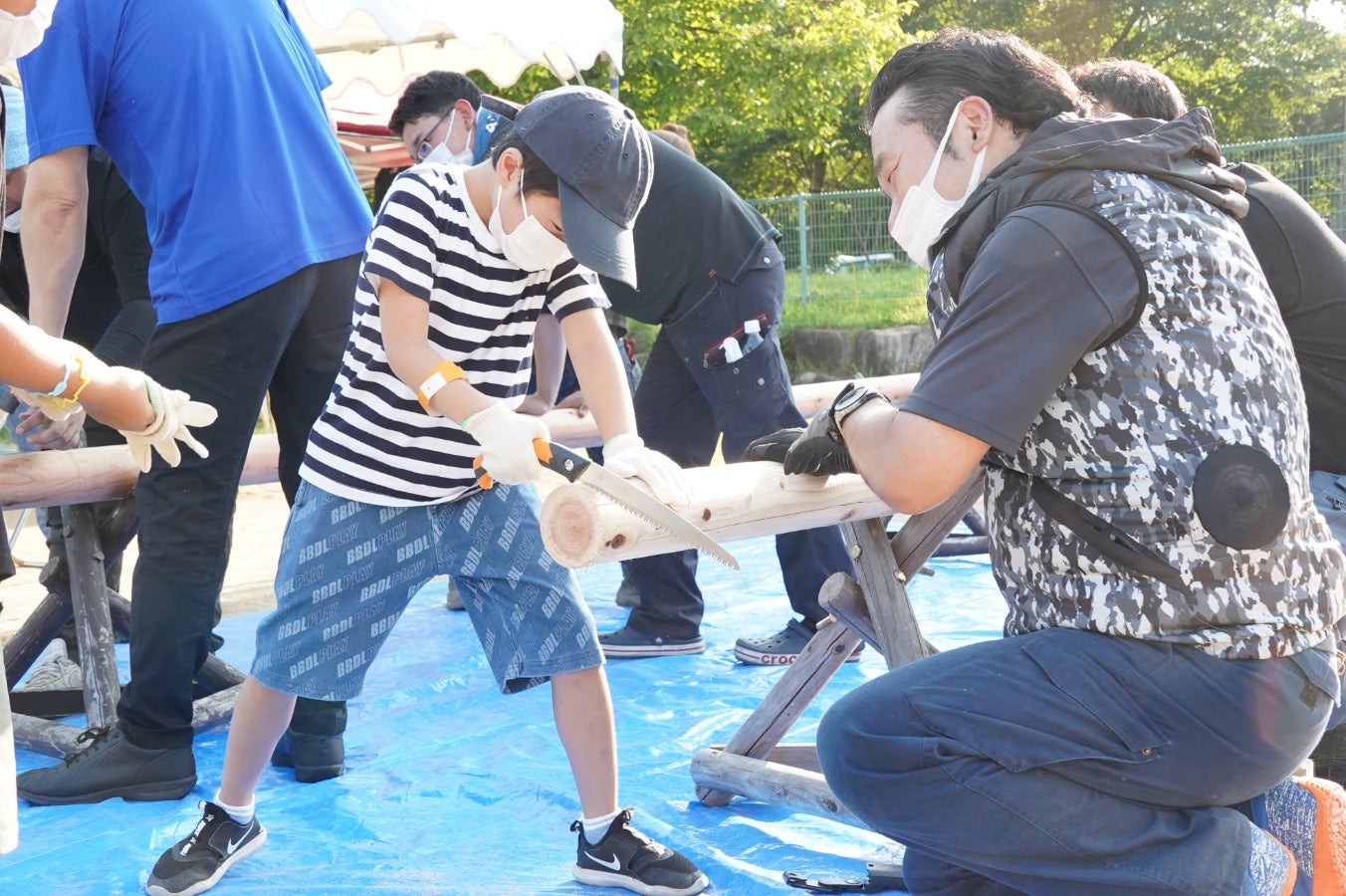 丸太をのこぎりで切る体験ができます。普段のこぎりを使ったことのない方もぜひこの機会にご体験ください。