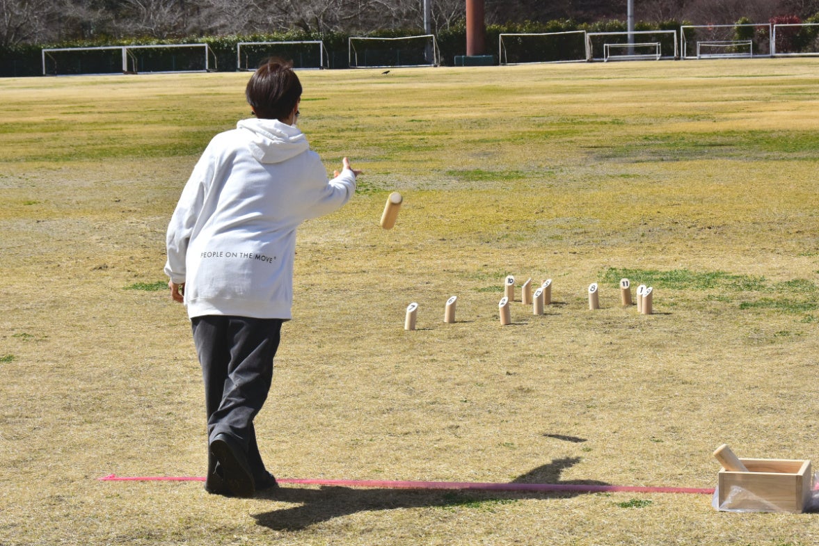 フィンランド発祥のアウトドアスポーツ「モルック」。 大子町産の木材を使用したモルックがお楽しみいただけるエリアを設けています。