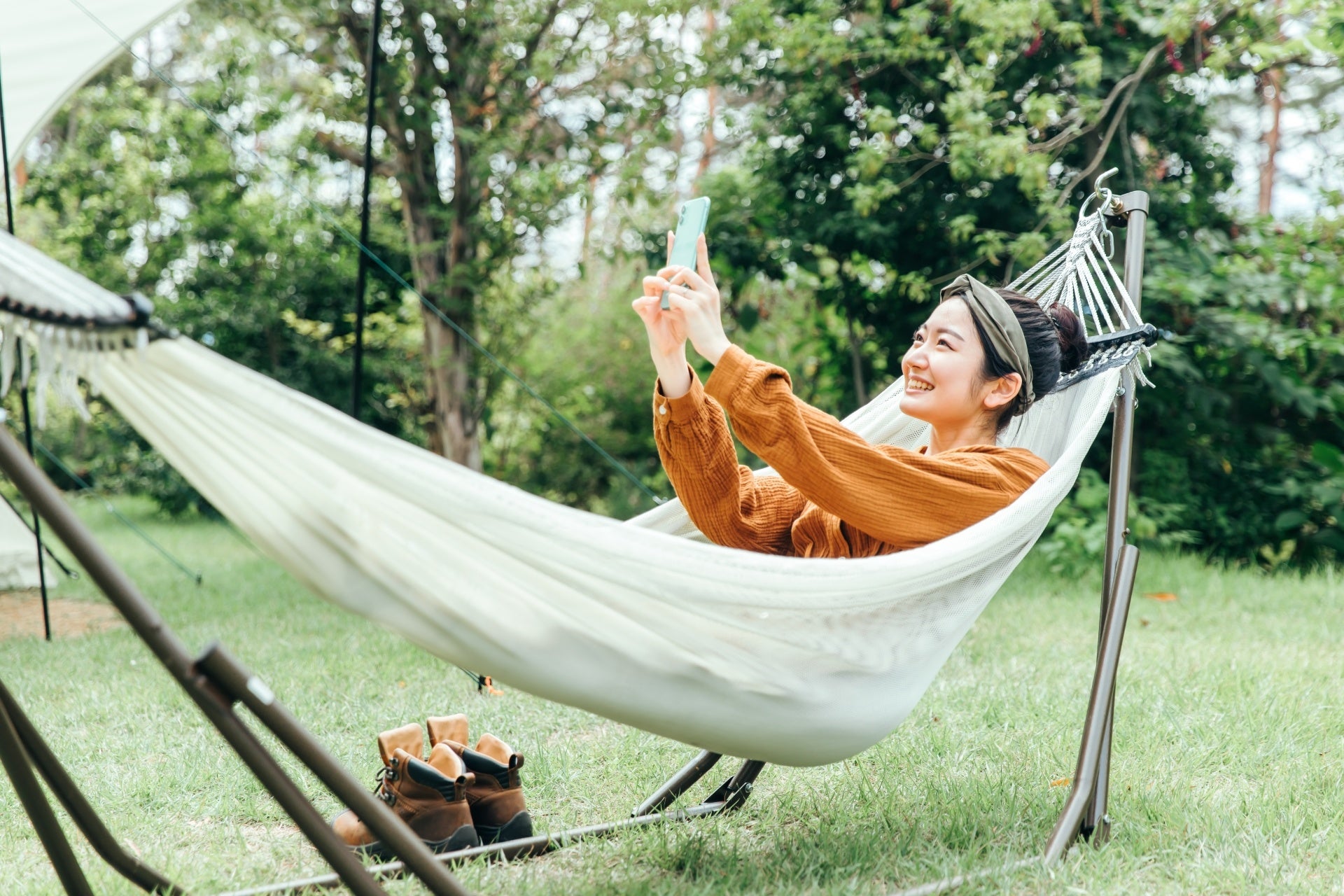 木陰にハンモックエリアを設け、どなたでもご自由におくつろぎいただけます。