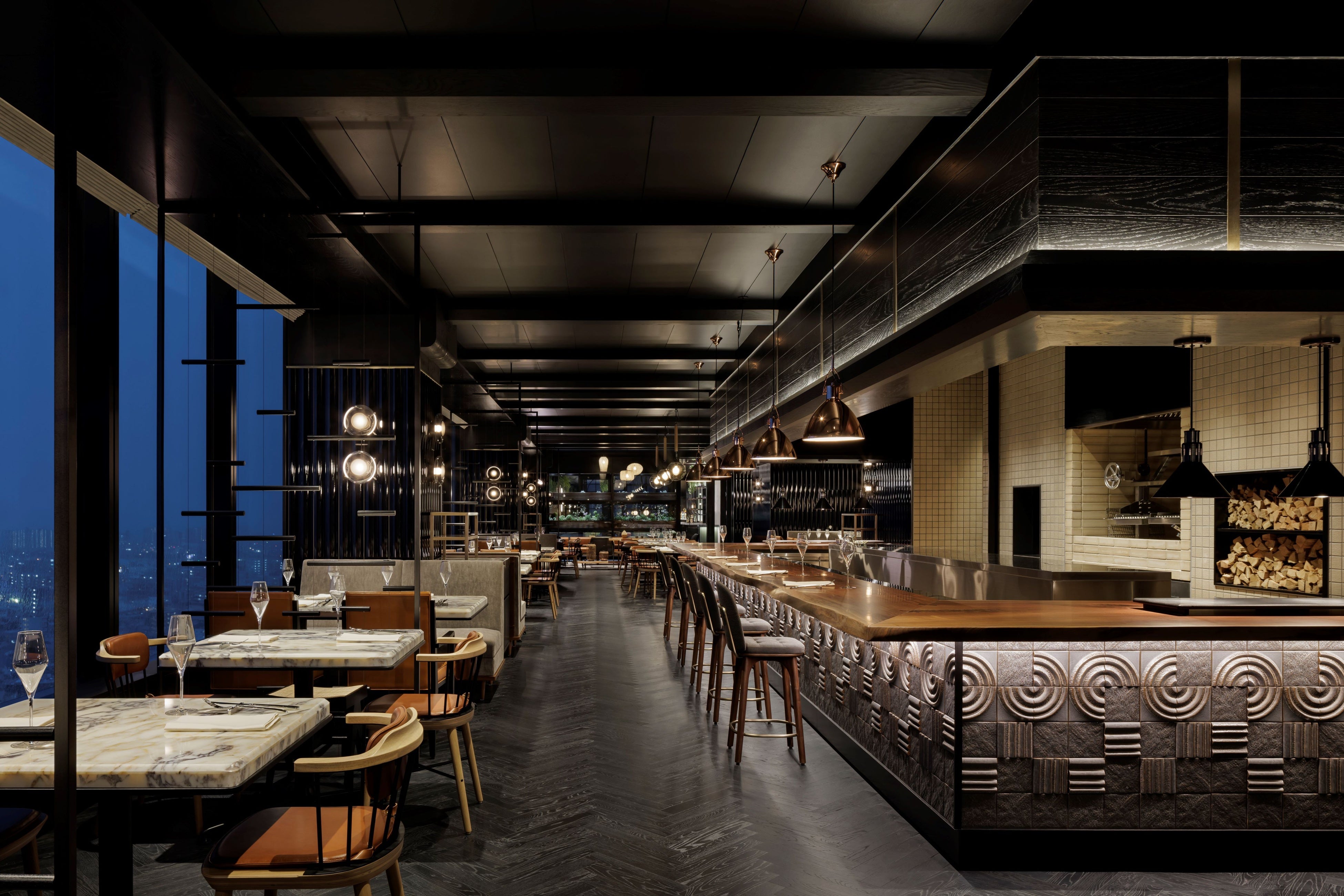 「FLYING HOG GRILL」は店内の薪窯でじっくりと焼き上げた鹿児島県産の食材を、最上階から望むダイナミックな桜島の景観とともに堪能できるレストランです。