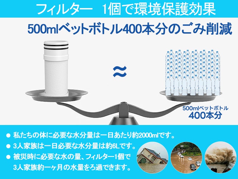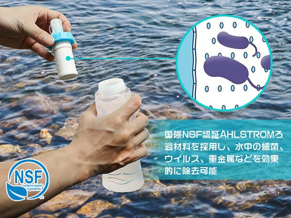 Ahlstromフィルター1個で約200Lろ過が可能です。アウトドアやキャンプ、登山などの際に飲料水のコストを大幅に節約できます。フィルター:使用開始後、約12ヶ月。(あるいは浄水器の総使用容量が上限に達している場合。)未使用保管期限: 約2年間。本体使用期限:約5年間。