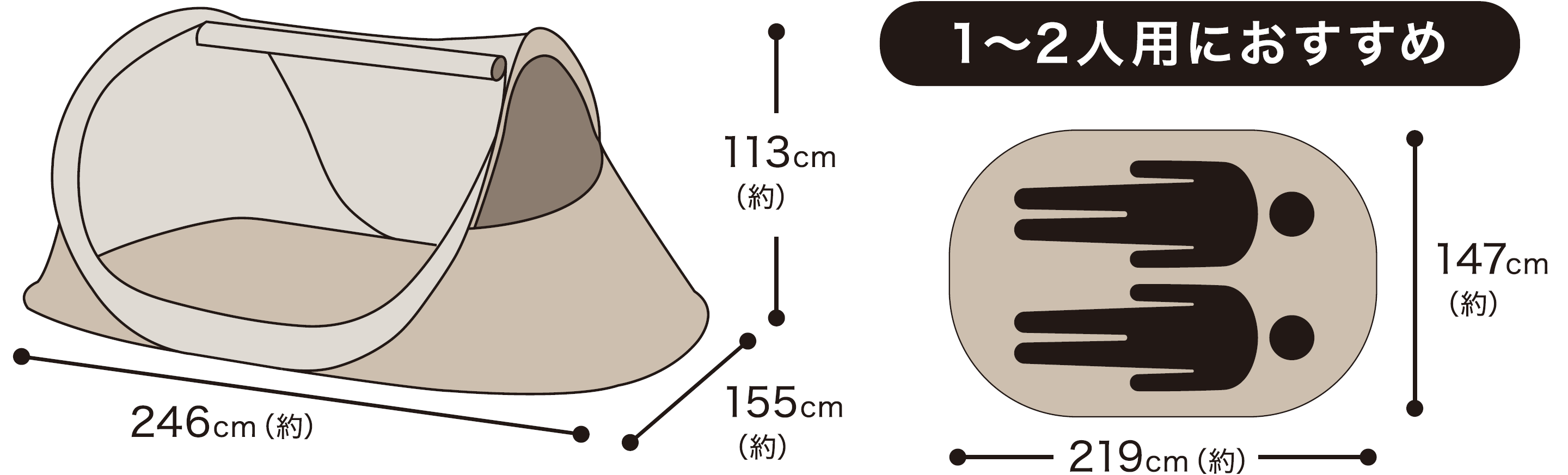 フライシートを付けた場合:幅246×奥行300×高さ113cm