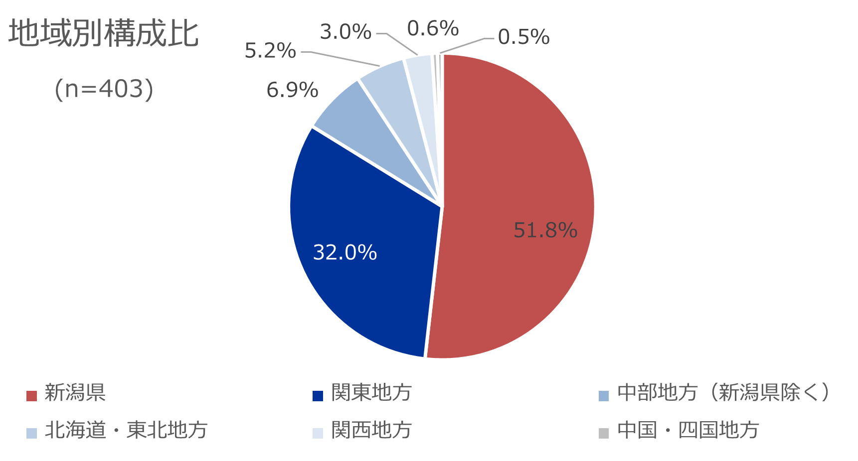 •  地元・新潟県からの来場者が約半数を占め、続いて30%強が関東地方からの来場。