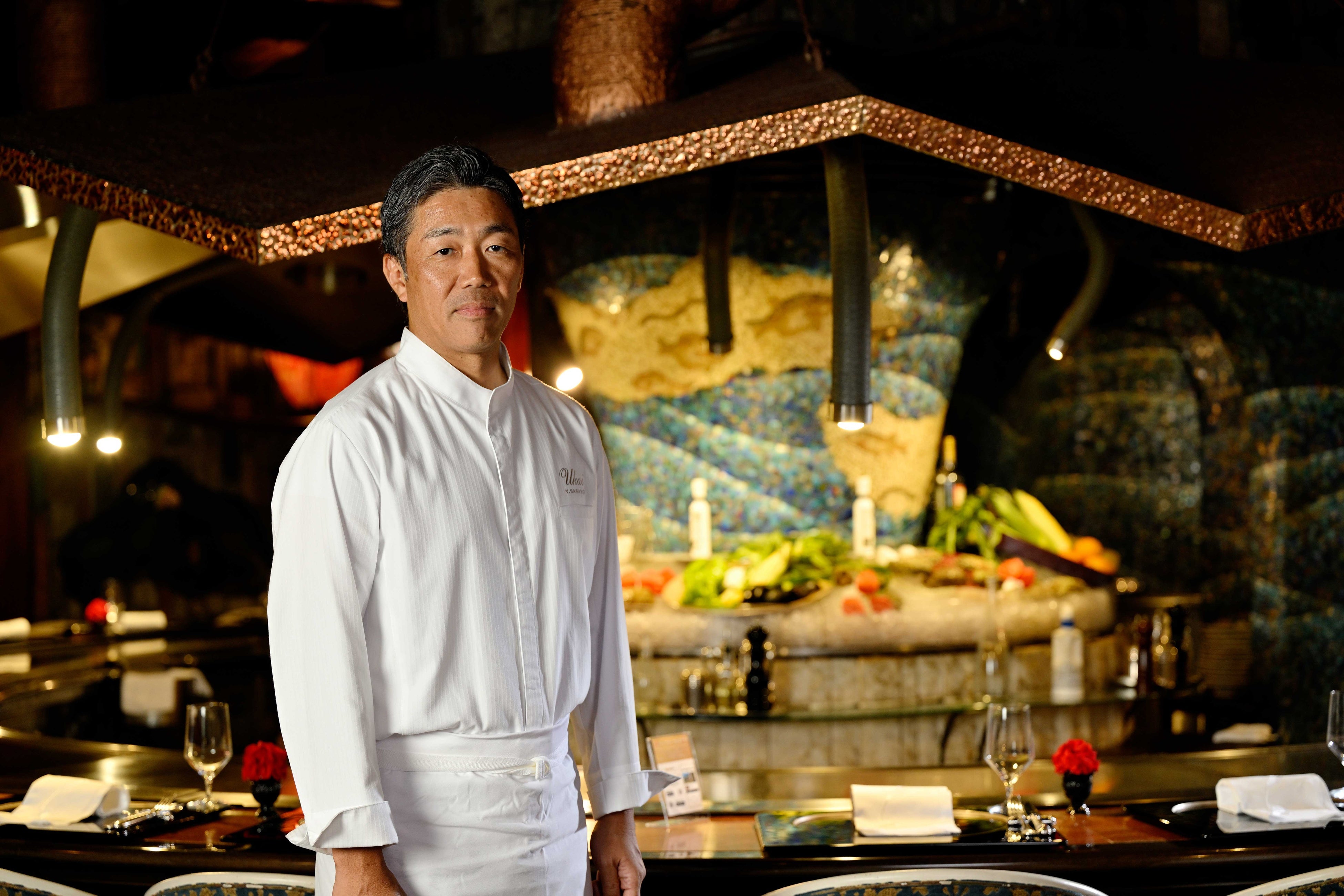 東京・神奈川・台湾にあるうかいグループの鉄板料理店「うかい亭」における鉄板料理技術のスペシャリストの称号。“うかい料理”を探求し、お客様を想うおもてなしの心を持ちながら未来へその技術と精神を伝えていく強い志を持った料理人に与えられます。国内外で8店舗を構える「うかい亭」に所属する100名超の料理人の中で現在6名がマエストロの称号を取得。日々、鉄板料理人の花形として技の研鑽と心の伝承に努めています。