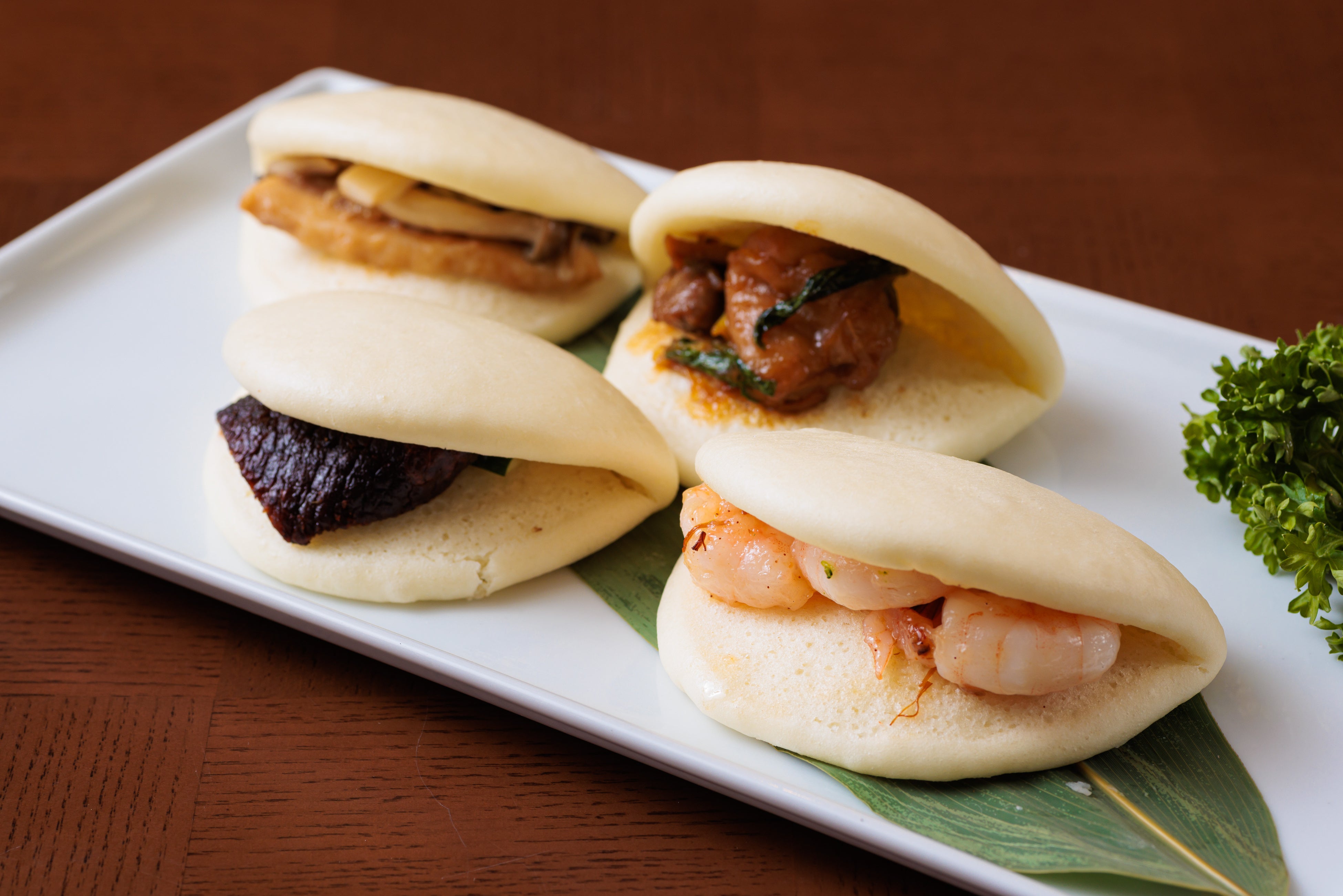 角煮などを挟んで食べる中国で人気の蒸しパン。北京ダックなど中華料理をお好きなだけ挟み、お召し上がりいただけます。中華のみならず、サラダやお肉料理など、自分だけの荷葉夾子バーガーづくりもおすすめです。