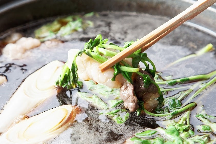 熊肉しゃぶしゃぶは、オリジナルの出汁にしゃぶしゃぶして召し上がって頂きます。