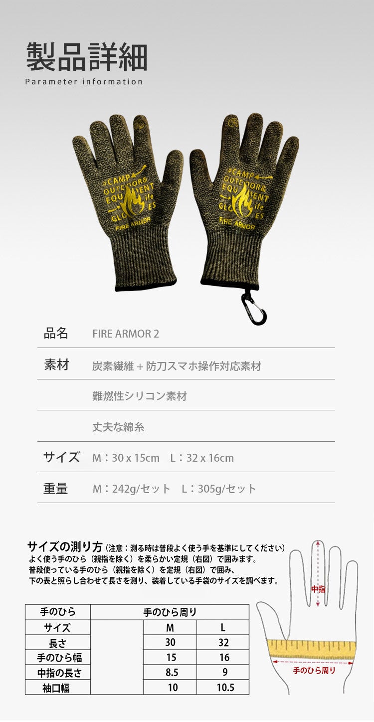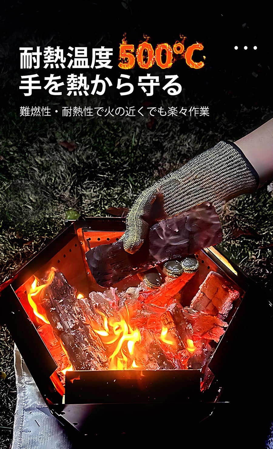 耐熱グローブ『FIRE ARMOR 2』は最大500℃の圧倒的な耐熱性を誇り、あなたの手を熱から守ります。