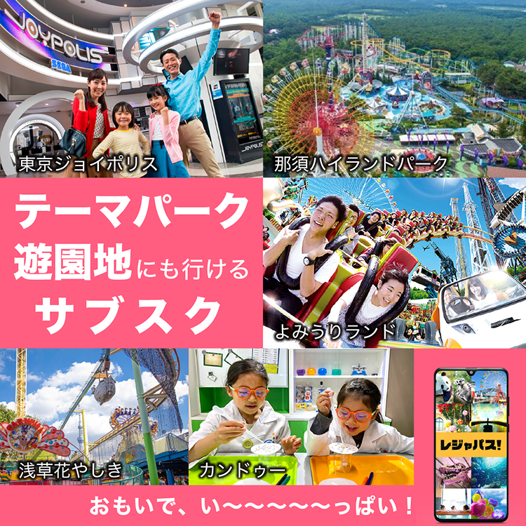 「レジャパス」は、遊園地・テーマパーク・美術館・温泉・サウナ・スポーツ観戦・カラオケなど、さまざまなジャンルの有料施設やイベントを会費のみで無制限に利用できる定額制サービスです。関西エリアでも幅広いジャンルを拡大中です。