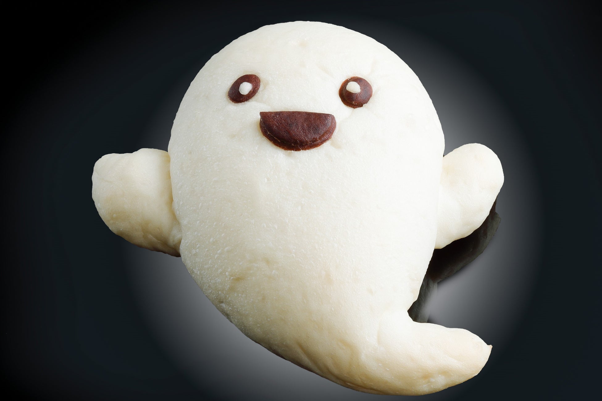 やわらかくもっちりとした食感のミルク生地の中に、キャラメルを練り込んだ餡を入れた、かわいいおばけ形のパンです。