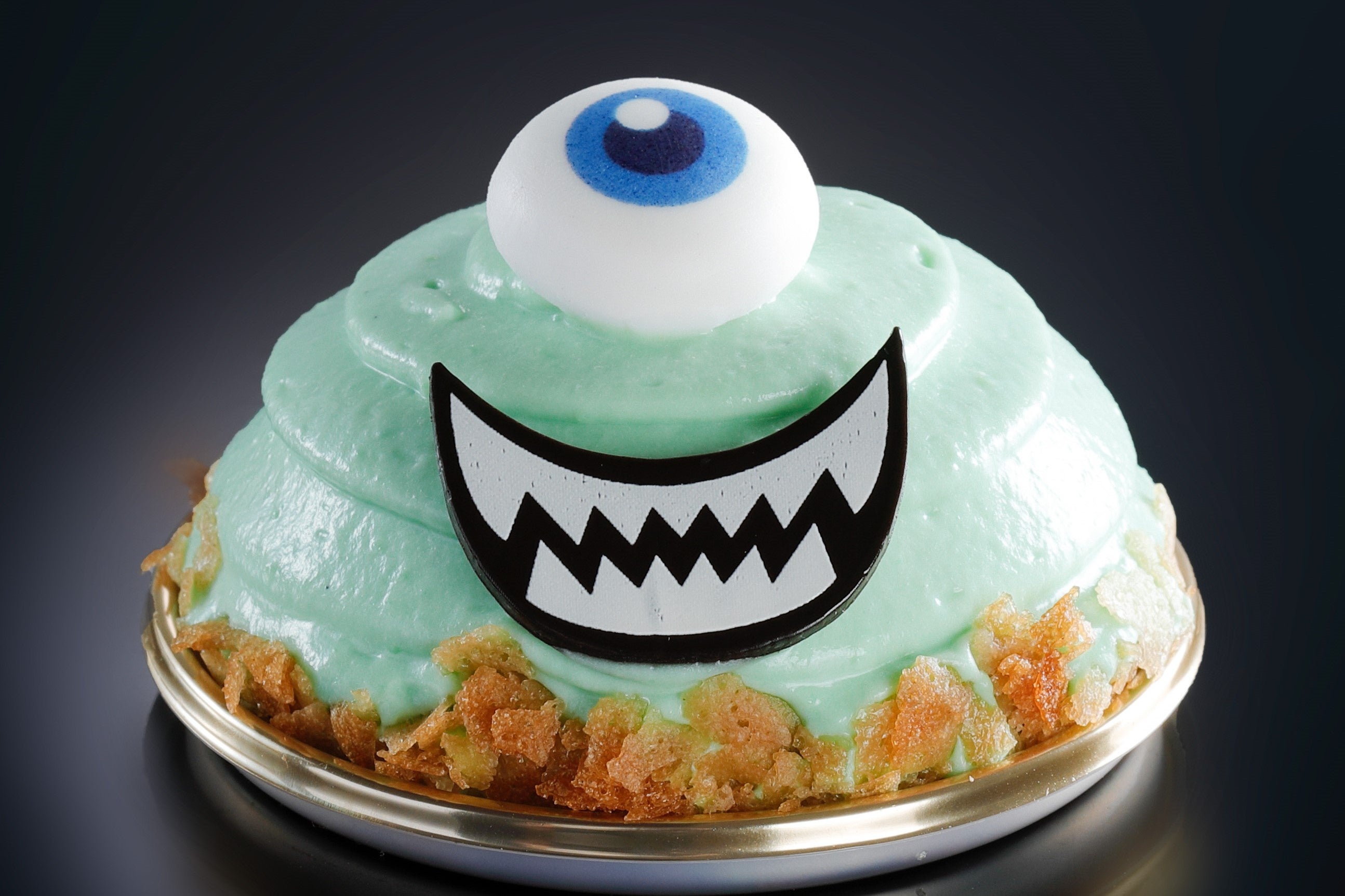 大きな一つ目がインパクトのあるグリーンモンスターは、リンゴのソテーと紅茶のムースで仕上げた上品な味わいのムースケーキです。