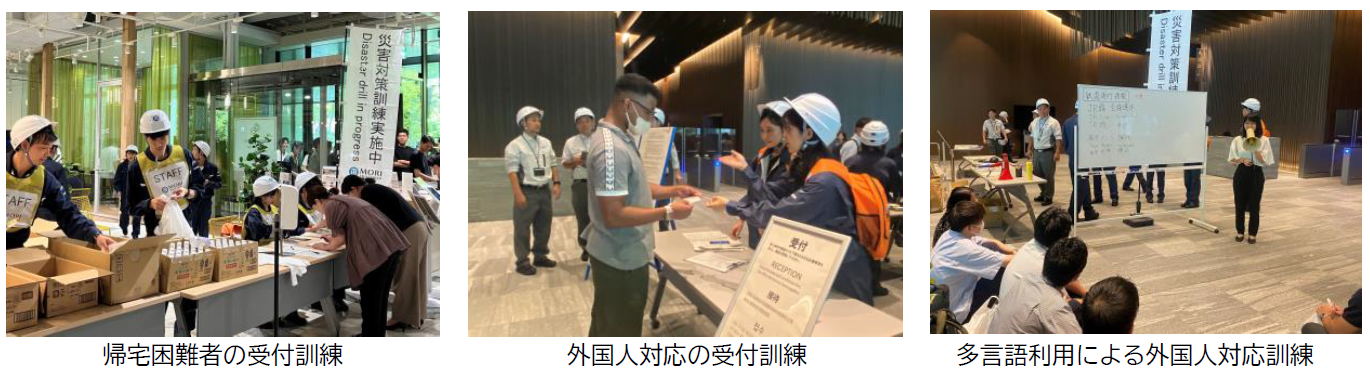 また、国際ビジネス拠点にふさわしい防災体制の確立にむけて、日本語が得意でない来街者への対応を想定した翻訳アプリを介したコミュニケーションや、森トラスト・ホテルズ&リゾーツのトリリンガル(日本語、英語、中国語)対応が可能なスタッフによる個別対応シミュレーションも実施しました。