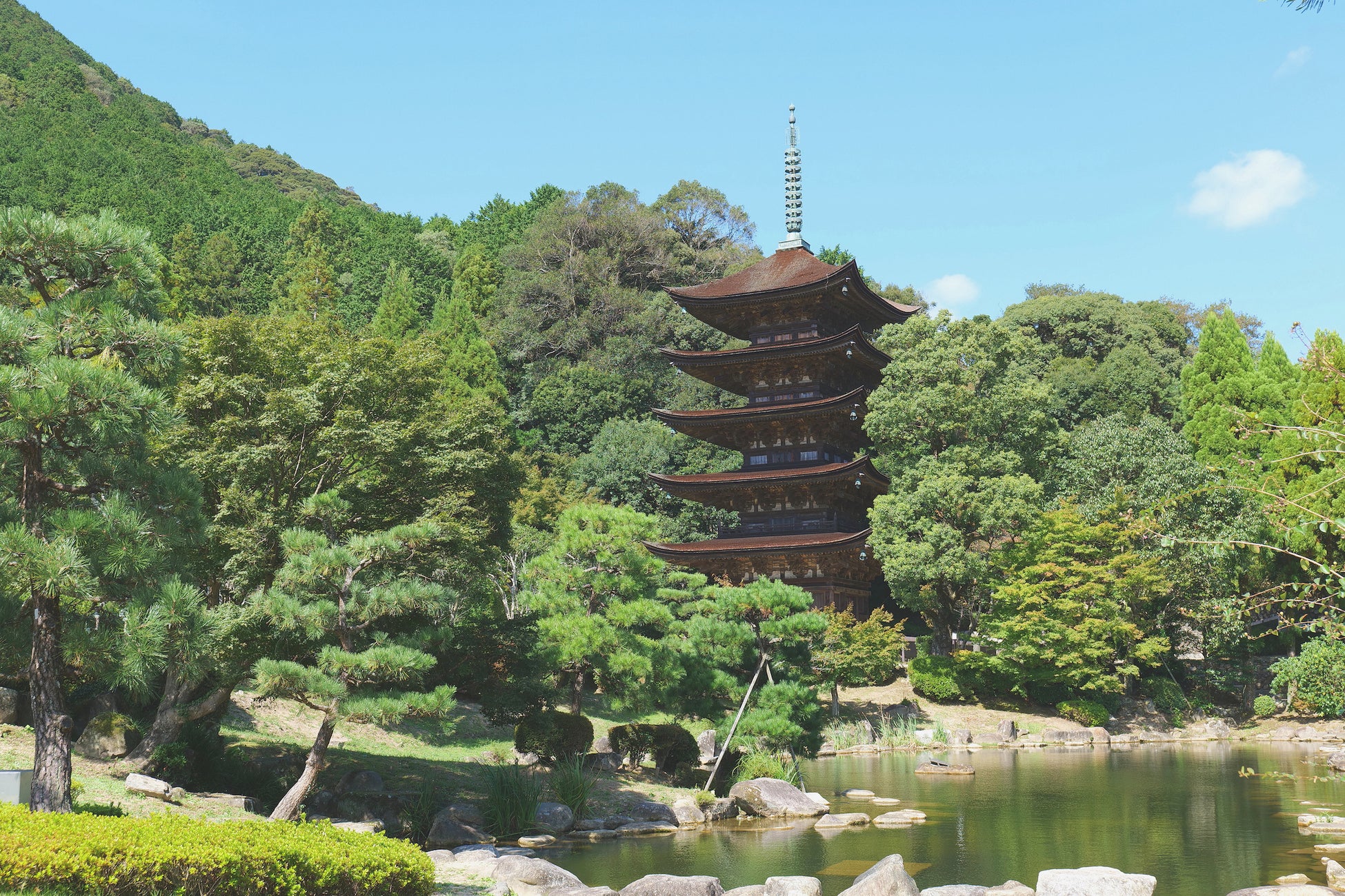 国宝瑠璃光寺五重塔は、日本三名塔の一つに数えられる山口市唯一の国宝であり、その美しさは室町中期における最も秀でた建造物の一つであると評されるほどです。1442年に守護大名の大内義弘公を弔うために建設されて以来、600年近く守り継がれてきた五重塔は、2022年から約70年ぶりの檜皮葺屋根の全面葺き替え工事が行われています。