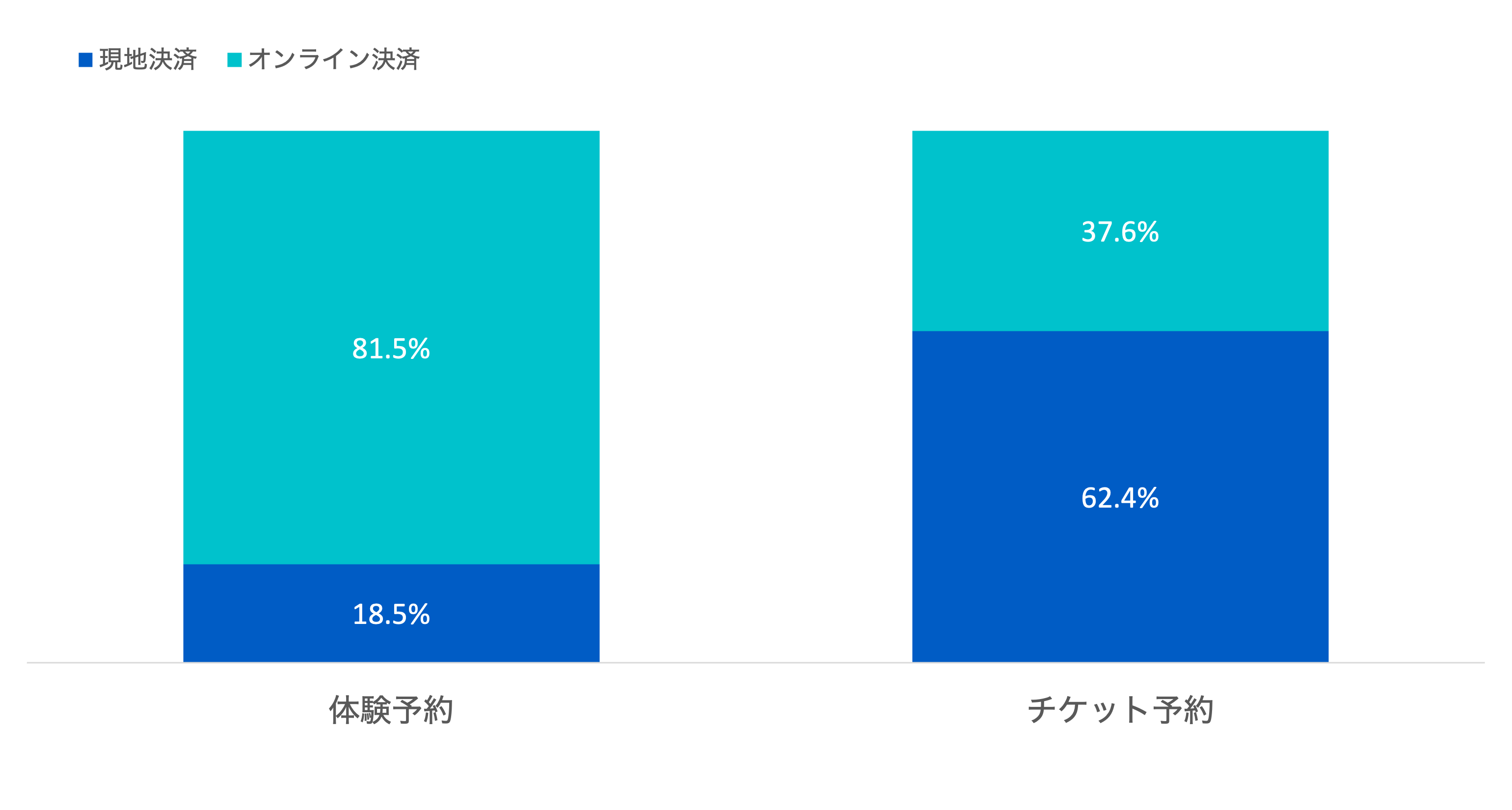 「チケット」とその他の「体験」では、決済方法に明白な違いが見られます。