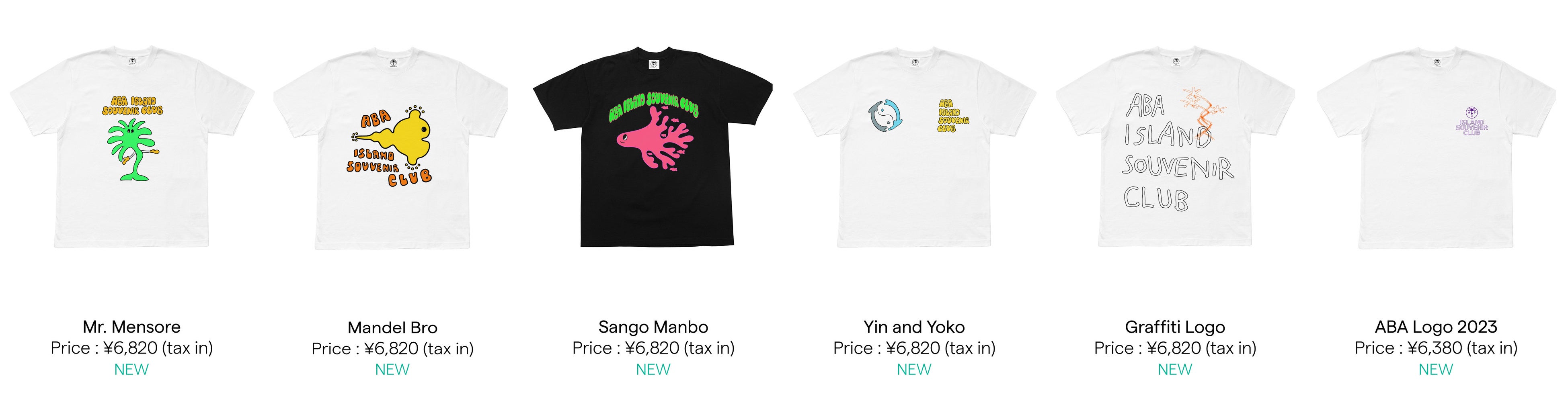ABA ISLAND SOUVENIR CLUBは毎年、国内外で活躍中の様々なクリエイターによってグラフィックが施された限定Tシャツやグッズを公開しています。HP▶ https://aba-isc.jp/