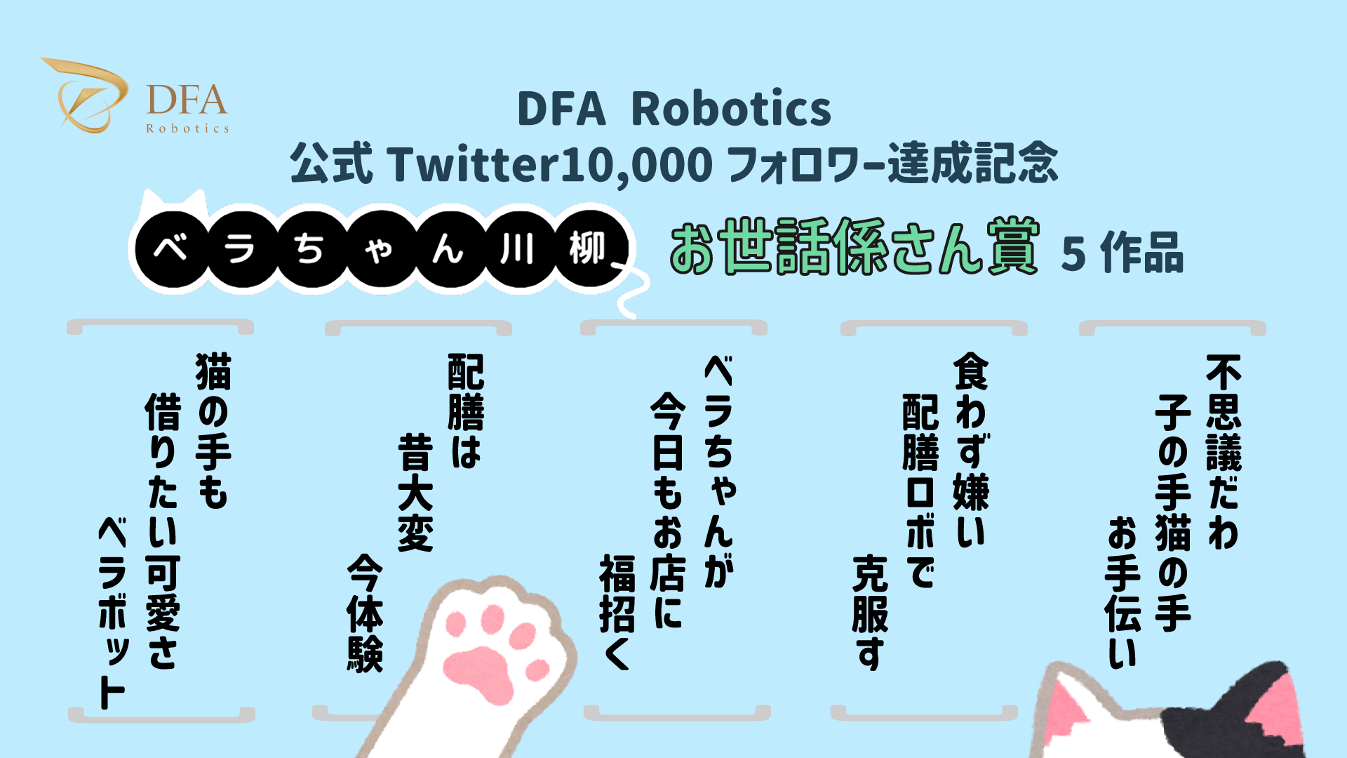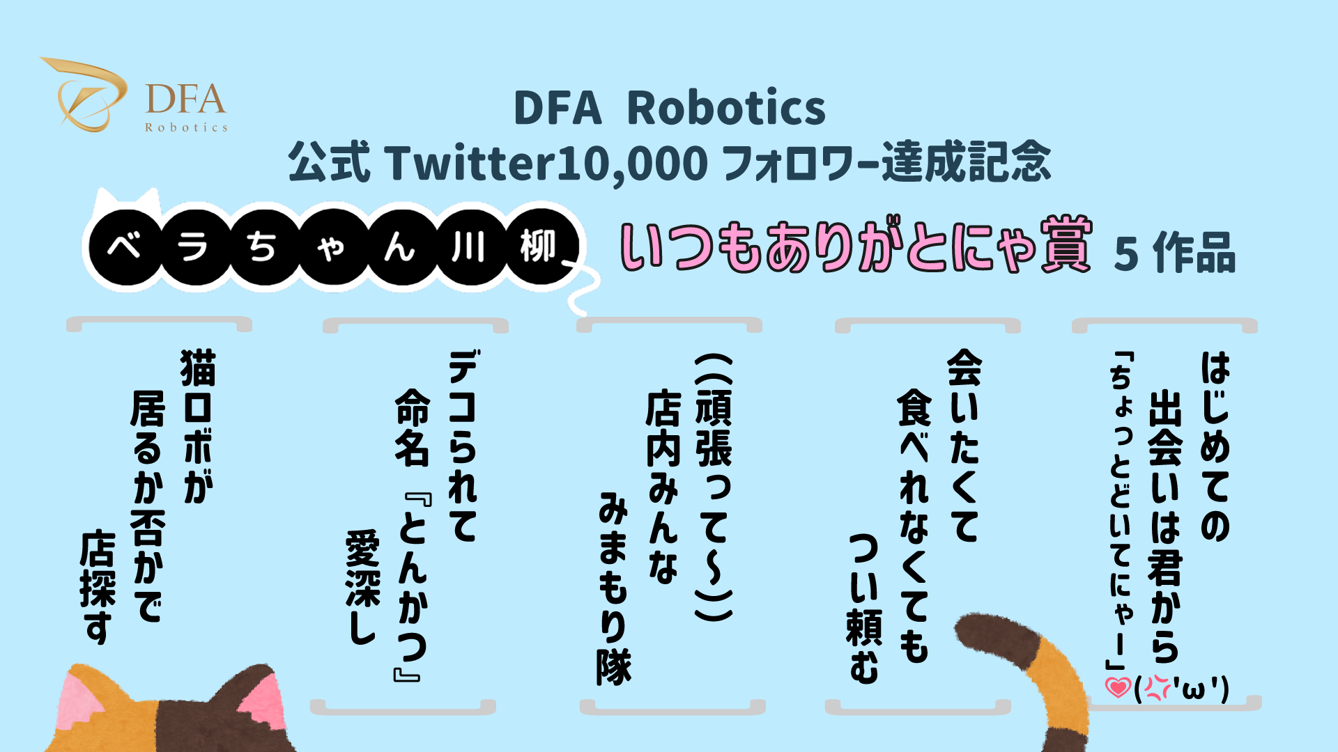 以上、DFA Robotics主催「第1回ベラちゃん川柳」の入選作品発表でした。