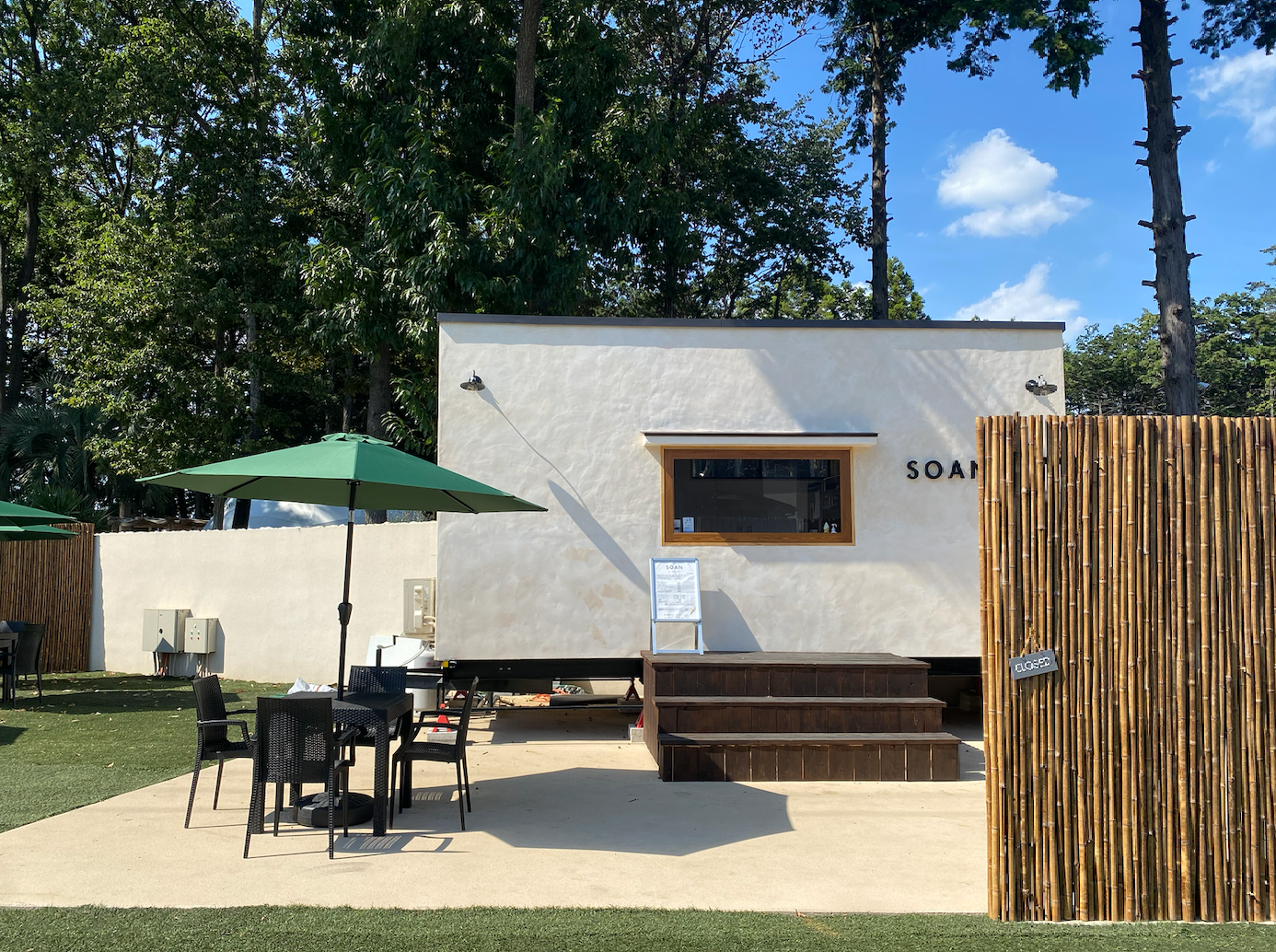 トレーラースタイルのカフェではCreemaソフトクリームや果肉入りドリンクなどを販売。