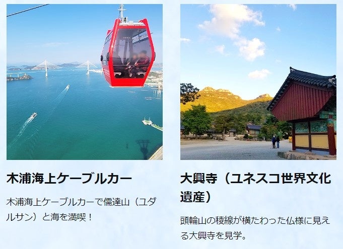 このツアーで注目いただきたいのが、全羅南道の中でも個人では足を延ばしにくい谷城(コクソン)と海南(ヘナム)を訪問すること。 順天(スンチョン)の干潟で獲れた海の幸を食し、谷城で蒸気機関車体験、木浦(モッポ)で歴史探訪と360度のパノラマを楽しめる海上ケーブルカーに乗車、海南でユネスコ世界文化遺産の寺院とプレミアムマッコリの醸造場を訪問。