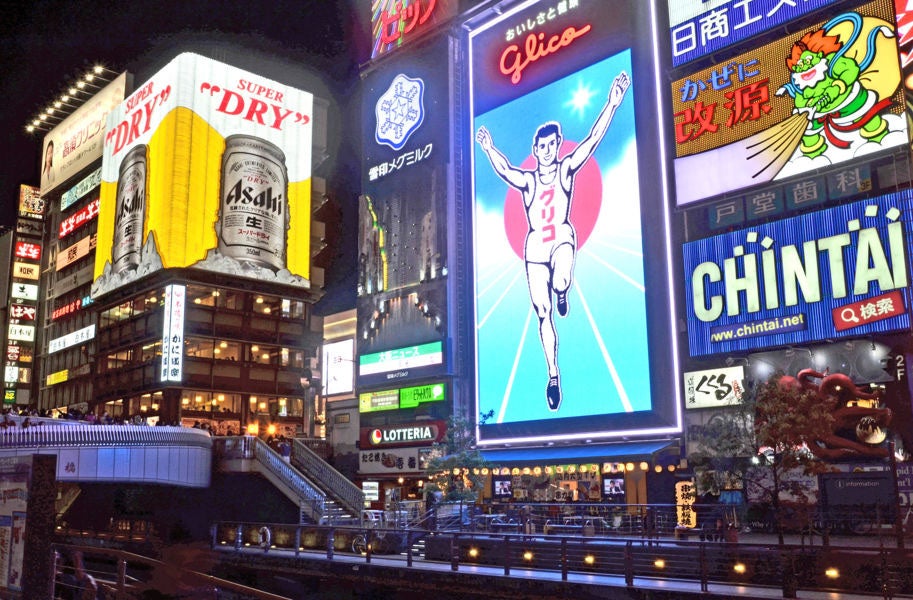 大阪ならではの派手な看板が並ぶ道頓堀は、粉もんを中心に大阪グルメが集結。さらに「なんばグランド花月」などの舞台もあり、大阪の文化を一度に体感できる。