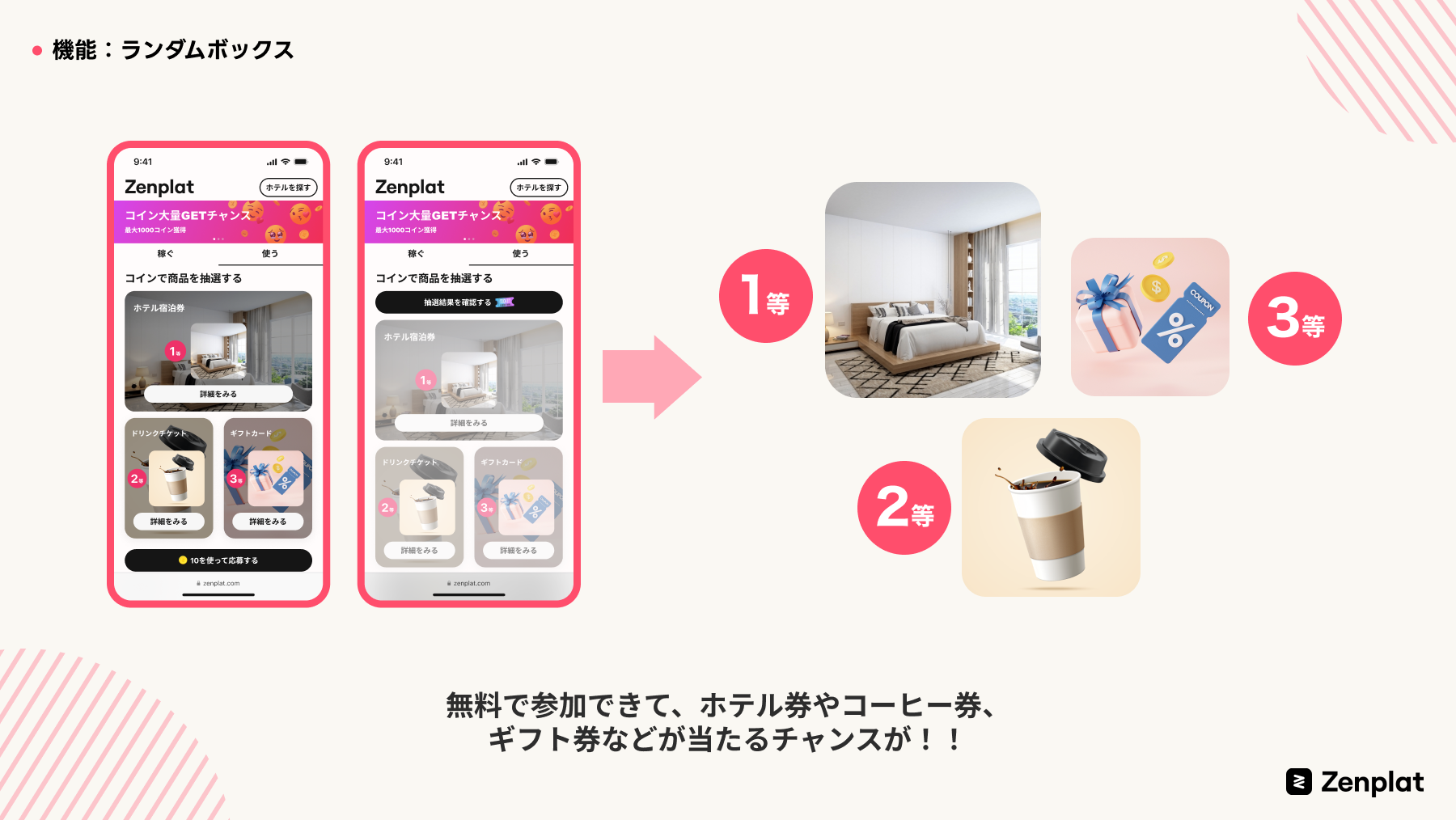 ユーザーはZenplat経由でコインを貯めホテルを予約することで、Zenplat内のコインと提携先旅行予約サービスのポイントの二重取りをすることができます。