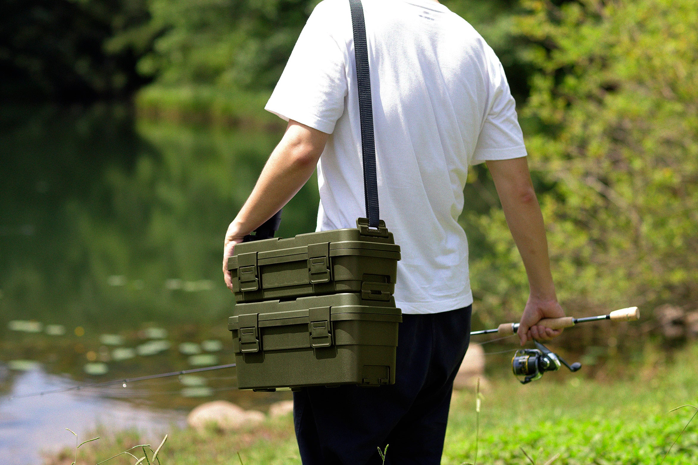 トランクカーゴは「細々した道具を収納するコンテナが欲しい!」とのユーザーの方々の意見を基に、小型コンテナの開発を行いました。キャンプユーザーの方々は、道具を用途ごとに容器を分けて整理する方が多いということに着目し、容器を分けると同時に持てなくなるという課題を解決する為に、積み重ね連結の機能のある小型コンテ ナのスタックカーゴを開発しました。また、トレーや仕切板のオプション品を別売とすることで、必要に合わせてカスタマイズできる自由度もあります。素材は、プラスチック製で、雨や泥による汚れもサッと拭くだけで落とすことができます。耐荷重は20kgで上にモノを載せられ、ストレスなく使用することができます。用途としても、従来のキャンプ意外にもDIYの工具、釣り道具、車やバイクのメンテナンス道具など様々なシーンで使うことができます。