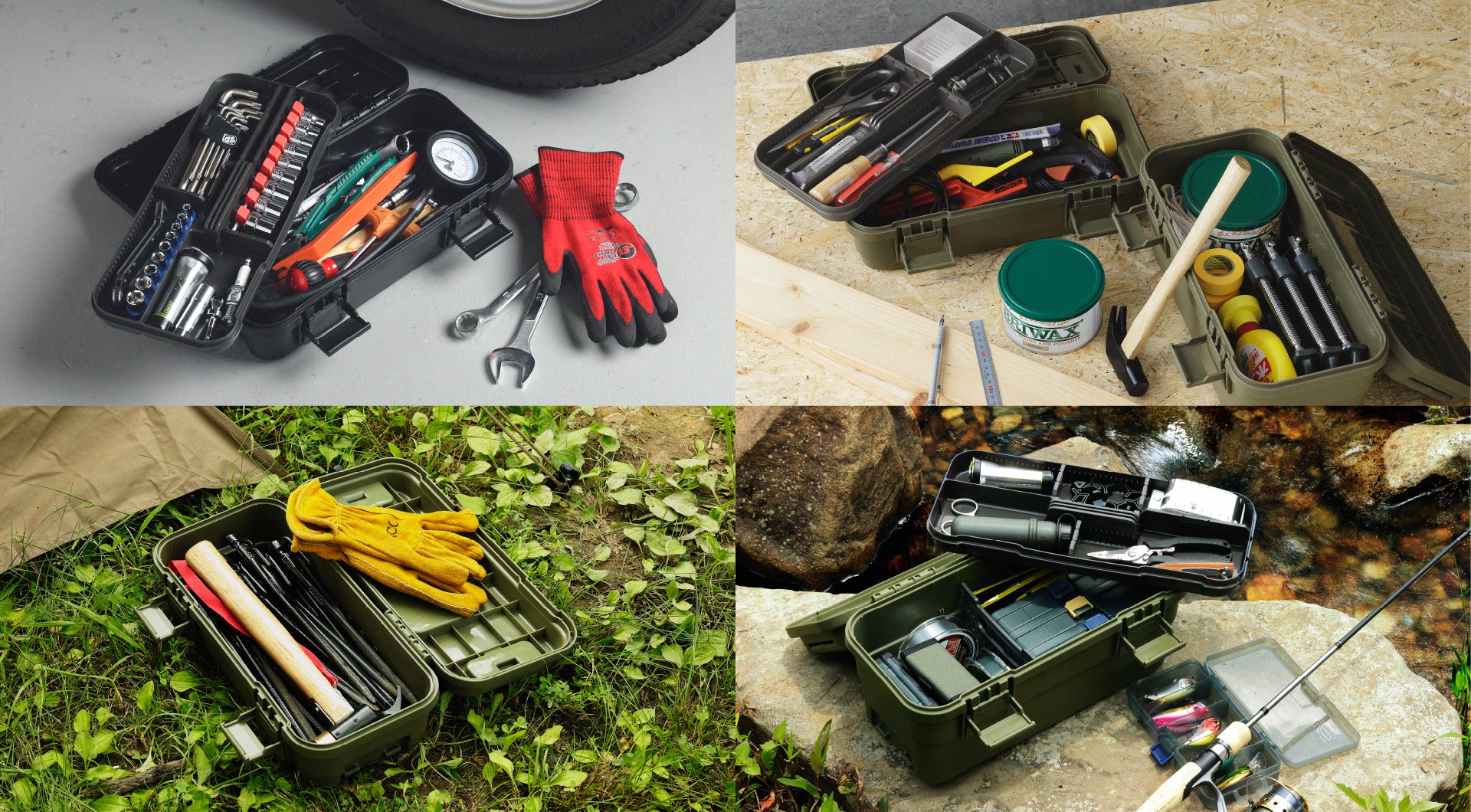 シンプル・無骨なデザインで使い勝手が良いとキャンパーに人気のキャンプ収納「トランクカーゴ 」シリーズ。テーブルや椅子など収納ボックスの枠を超えた使い方ができ、多くのキャンパーから支持をされています。今回、小型の道具の収納に最適なツールを収納できトランクカーゴとの互換性も兼ね備えた小型のツールコンテナボックス「スタックカーゴ」と容器内の整理整頓ができる専用の仕切板とトレイのオプションパーツを発売します。