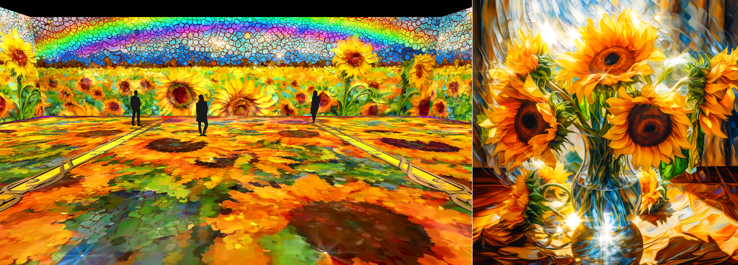 デジタルインスタレーション、オーディオビジュアルショーケースなど、革新的な体験価値を提供する”ETERNAL Art Space”がキュレーションする最先端のデジタルコンテンツを、「Immersive Museum」本編とフォトタイムが終わり、次の本編が始まるまでの3分間の間に上映しています。9月1日より、AIとジェネラティブアートにより、ポスト印象派を現代の新しい形に再構成を試みた作品「Joy」を上映します。