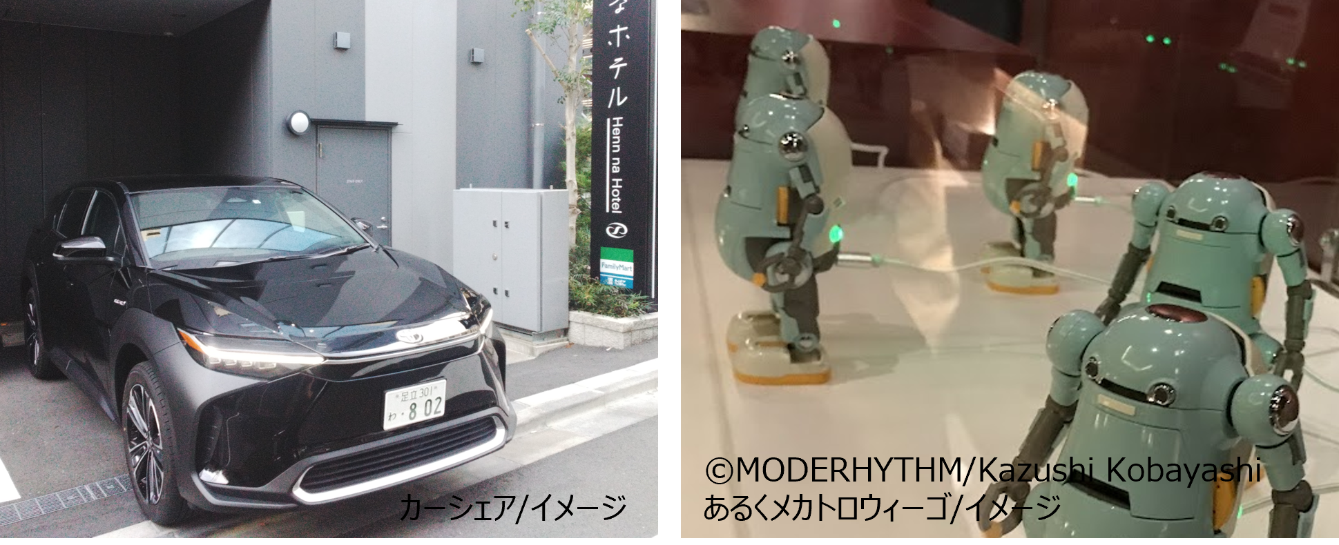 ホテルを基点として、東京都内や近郊都市へ観光にお出かけになるお客様が多いことから、お客様の満足度向上のため、新たな移動手段の選択肢として、トヨタのカーシェアサービスTOYOTA SHAREの電気自動車「bZ4X」のカーシェアステーションを東京都内のホテルとしては初めてホテルの敷地内に設置します。「bZ4X」は一般販売されていないリース専用車で、洗練されたデザイン、広い室内空間、低重心・高剛性による加速感と静粛性の両立、トヨタ最新の安全機能の搭載など、今までにない”未来”を感じさせる車種となります。ご利用料金は440円/15分あたりとなります。